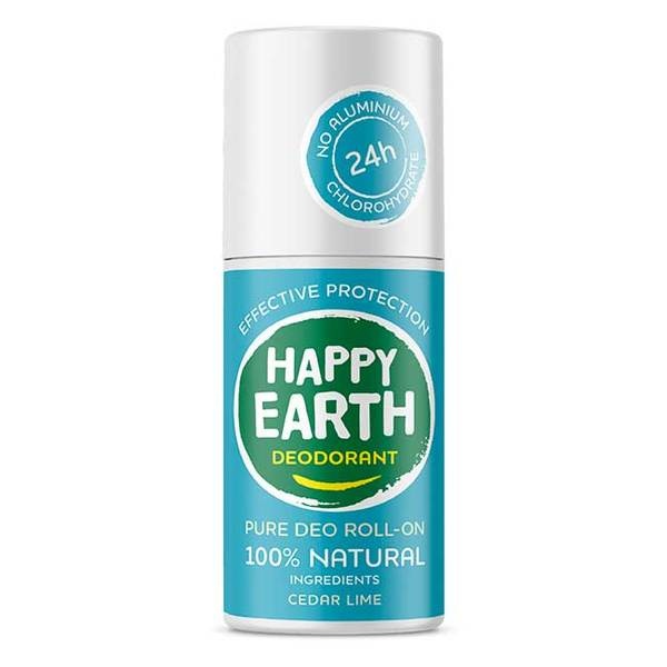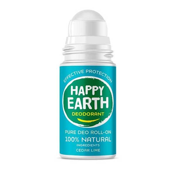 De Pure Deo Roll-On Cedar Lime van Happy Earth is een 100% natuurlijke, 100% effectieve deodorant. De deodorant laat een microscopisch laagje van minerale zouten achter op de huid. Deze doden de bacteriën, zonder de poriën te blokkeren of te vernauwen. Hierdoor blijf je de hele dag fris ruiken. De deodorant laat geen witte of gele vlekken in kleding achter. Betaïne, aloë vera en etherische oliën van ho-hout en pompelmoes verzorgen en verzachten de huid. De deodorant heeft een fris-vrolijke geur van ceder en limoen.