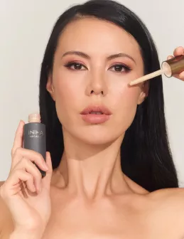 Breng via het pipetje de primer aan op het gezicht en masseer zachtjes in. Laat het even intrekken en breng vervolgens je INIKA foundation aan.