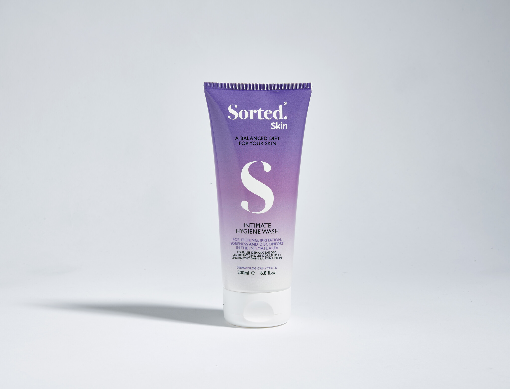 Sorted Skin Intimate Hygiene Wash kan dagelijks gebruikt worden voor een effectieve verlichting van jeuk, pijn, droogheid, ongemak en geurtjes in de liezen en intieme zone. De kristalheldere formule bevat alleen natuurlijke ingrediënten en is vrij van SLS, SLES, parabenen en andere agressieve ingrediënten.