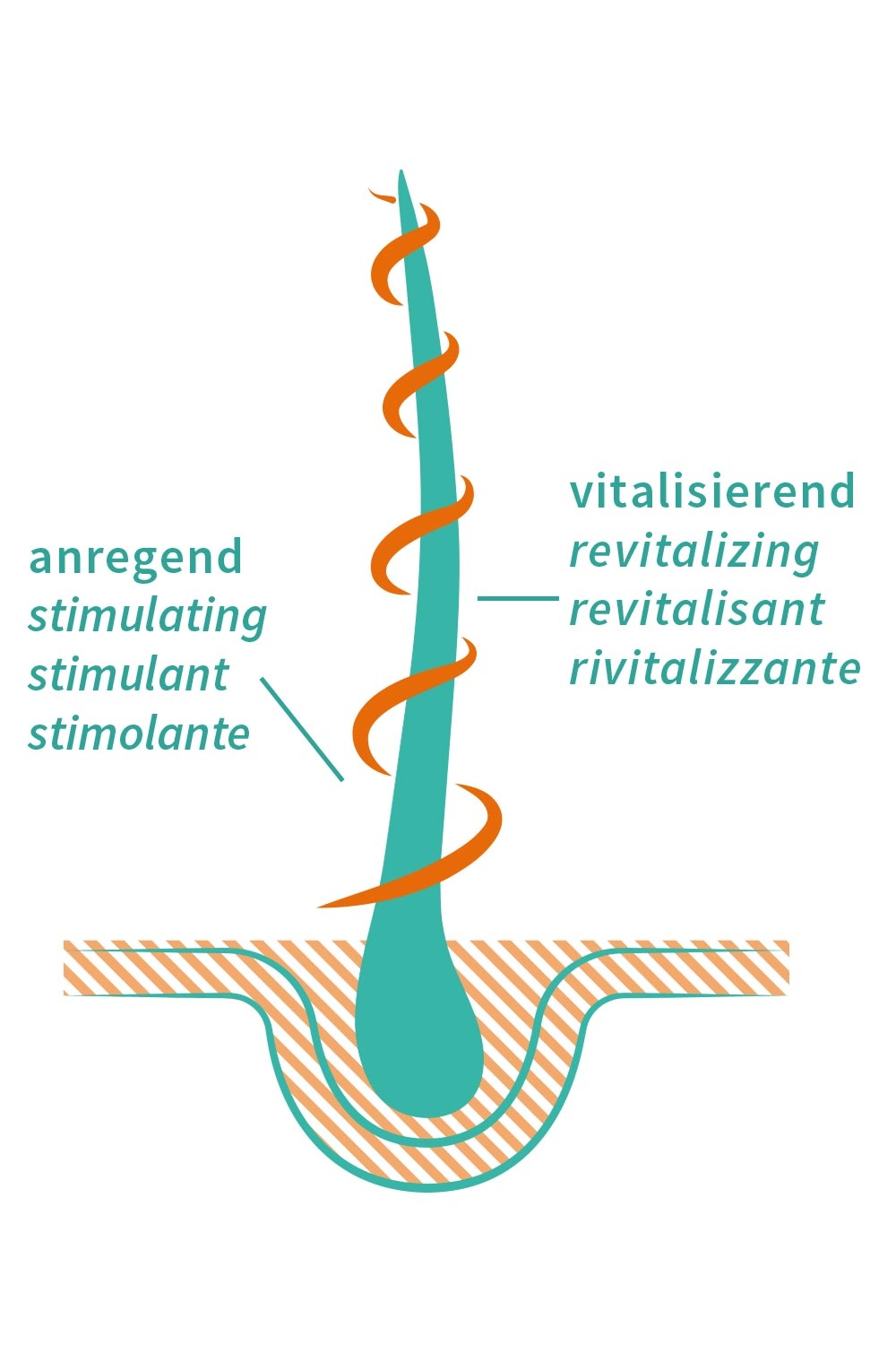 Rozemarijn werkt activerend en stimuleert de doorbloeding van de hoofdhuid. Zo bevordert het de stofwisseling van de hoofdhuid en zorgt het voor een betere haargroei. Bovendien reguleert rozemarijn de talgproductie en heeft het een activerend-frisse geur. Fenegriek wordt in de ayurveda traditioneel ingezet tegen haaruitval. De fenegriekzaden verzorgen de hoofdhuid en daarmee de haarwortels met vitaminen, ijzer, proteïnen en vele andere vitale stoffen die een positieve uitwerking op de haargroei hebben. Bhringaraj werkt versterkend en regenererend op huid en haar. In India wordt de olie uit deze geneeskrachtige plant ingezet tegen haaruitval en om de haargroei te bevorderen. De Ayurvedic Hair Oil Vitality Grow bevat verder o.a. sesamolie, castorolie, brahmi extract, amla extract en wortelolie.