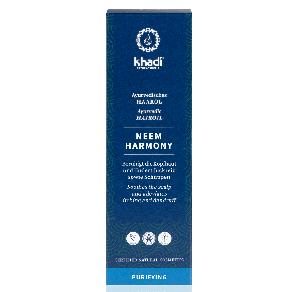 De Ayurvedic Scalp Oil Neem Harmony van Khadi is een natuurlijke hoofdhuidolie voor een gekalmeerde, harmonische hoofdhuid in evenwicht, zonder jeuk en hoofdroos. De Neem Harmony olie stimuleert het herstellend vermogen van de hoofdhuid en brengt de hoofdhuid snel en effectief terug in evenwicht. Na gebruik voelt de hoofdhuid bevrijd en ontspannen aan, zonder roodheid en schilfers. Het geheim van de deze hoofdhuidolie is de magische werking van de Khadi elixir: geselecteerde Indiase geneeskrachtige planten worden traditioneel voorzichtig boven een open vuur gekookt volgens ayurvedische recepten van duizenden jaren oud. Dit geneeskrachtige kruidenextract brengt je hoofdhuid weer tot rust. Ayurvedische geneeskrachtige planten waaronder bruine mosterdolie en neem kalmeren de hoofdhuid en verminderen jeuk en schilfervorming. Tea tree olie reguleert de talgproductie zacht en langdurig. De Ayurvedic Scalp Oil Neem Harmony is vegan en 100% natuurlijk.