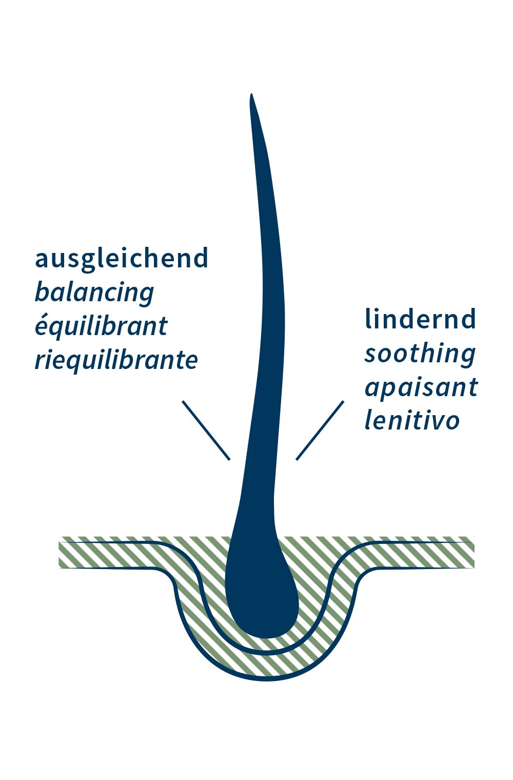 Neem staat al duizenden jaren bekend als één van de belangrijkste geneeskrachtige planten in de ayurveda. De olie uit de zaden van de neemboom bevat meer dan 100 werkzame stoffen. Neem kalmeert irritaties, remt ontstekingen en zorgt voor een aangenaam koel gevoel op de hoofdhuid. Bruine mosterdolie werkt antibacterieel en activeert het immuunsysteem. Het bevordert de doorbloeding en stimuleert de stofwisseling van de hoofdhuid. Dankzij de antifungale werking vermindert het irritaties. Tea tree olie werkt verkoelend en antibacterieel en verdrijft hoofdroos en jeuk. De olie bevat verder o.a. sesamolie, fenegriek extract en limoenolie.