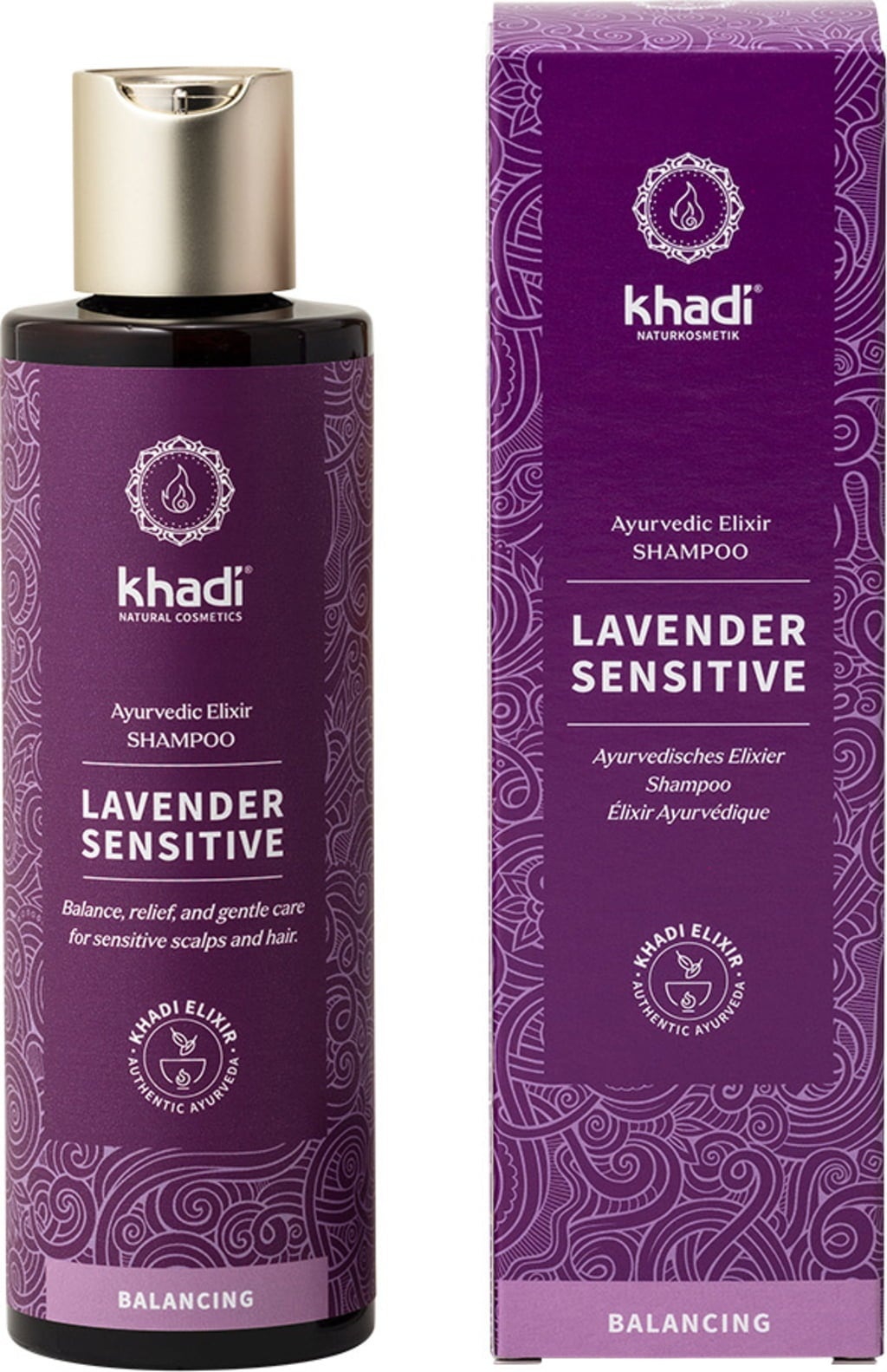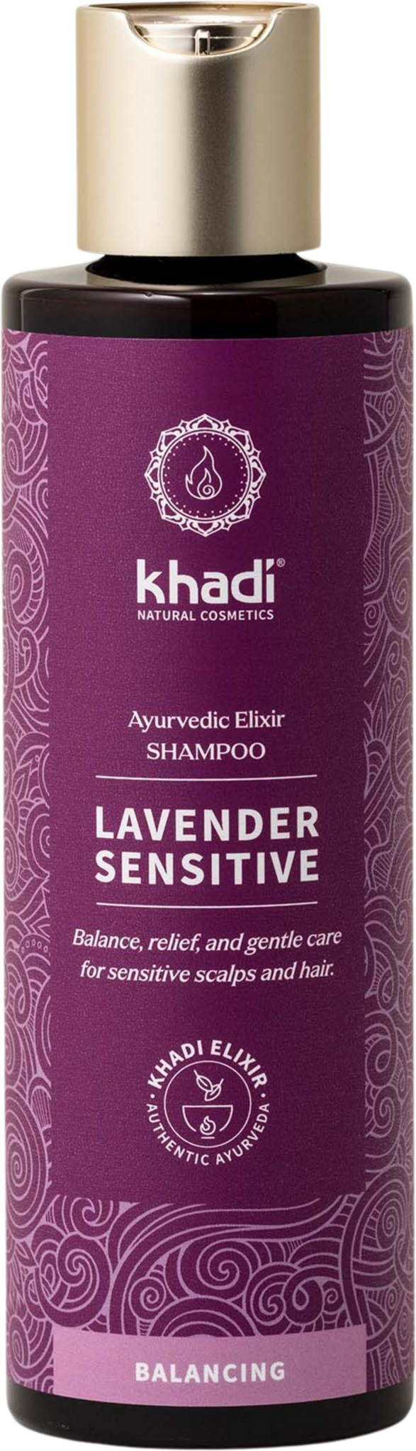 De Lavender Sensitive Ayurvedic Elixir Shampoo van Khadi is een natuurlijke shampoo voor harmonie, verlichting en zachte verzorging bij een gevoelige hoofdhuid en fijn, zwak haar. Verwent het haar al tijdens het wassen en is zeer geschikt bij een ontstoken, schilferige hoofdhuid. Deze ayurvedische shampoo wast zachtjes rondom gevoelig haar en kalmeert de geïrriteerde hoofdhuid. Het geheim van de zachte verzorging is te danken aan de Lavender Sensitive Elixer. In dit ayurvedische plantenextract verenigt zich de individuele werkzaamheid van handgeplukte Indiase geneeskrachtige kruiden tot een geheel. De elixer wordt zorgvuldig geproduceerd boven een open vuur volgens traditionele ayurvedische recepten.