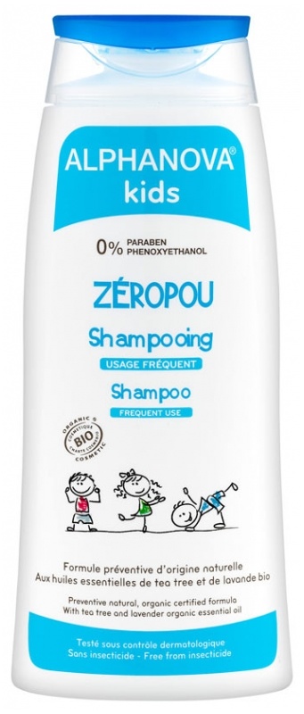 De KIDS Zéropou Shampoo van Alphanova is een natuurlijke shampoo met etherische oliën van lavendel, geranium en tea tree. De shampoo voorkomt hoofdluis dankzij lavendelwater en -olie. Milde tensiden reinigen op zachte wijze zonder uit te drogen of te irriteren. De shampoo is verrijkt met biologische aloë vera en katoenextract om haar en hoofdhuid te verzorgen. Voor het verwijderen van hoofdluis de KIDS Zéropou Anti-Hoofdluis Lotion gebruiken.