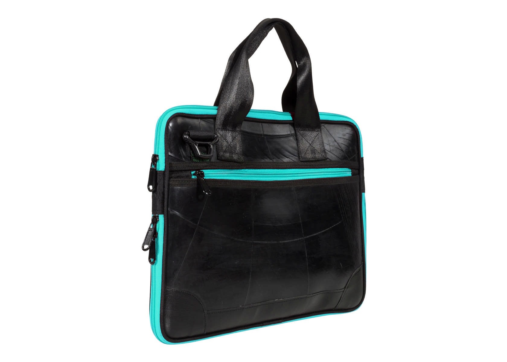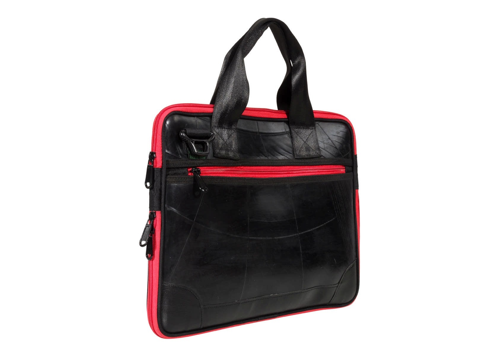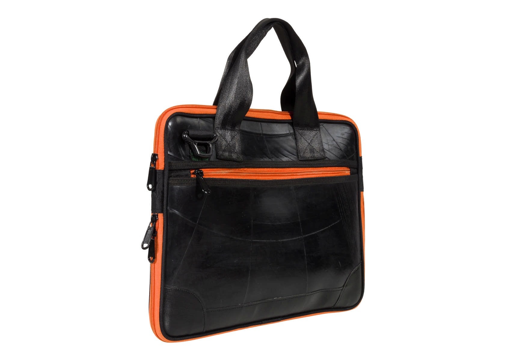 De handgemaakte Panther Laptoptas van geupcyclede binnenband is een onmisbare personal assistant voor elke professional. De tas heeft multifunctionele vakken met ritssluiting aan voor- en achterzijde, het gewatteerde hoofdvak beschermt een 17” laptop of tablet en drie kleinere vakken bieden ruimte voor accessoires. Met de extra rits aan de onderkant kan de tas makkelijk vergroot worden.