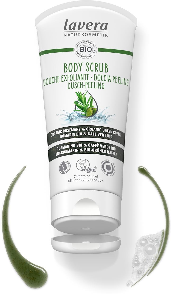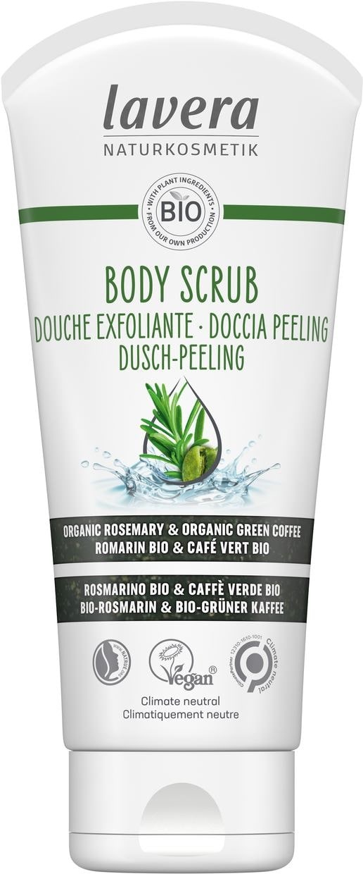 De Body Scrub van Lavera is een natuurlijke lichaamsscrub die je een fluweelzachte huid doet ervaren. De pH-gebalanceerde formule met natuurlijke exfoliërende microkorrels verwijdert op milde wijze dode huidcellen en reinigt zacht met milde tensiden. Biologische rosemarijn staat bekend om zijn vitaliserende werking. Biologische groene koffie wordt gebruikt vanwege zijn weldadige werking op de huid. De heerlijk verfrissende geur van limoen en rozemarijn omhult het lichaam en zorgt voor frisheid en een gevoel van welzijn. De body scrub is ook geschikt voor de droge en gevoelige huid.