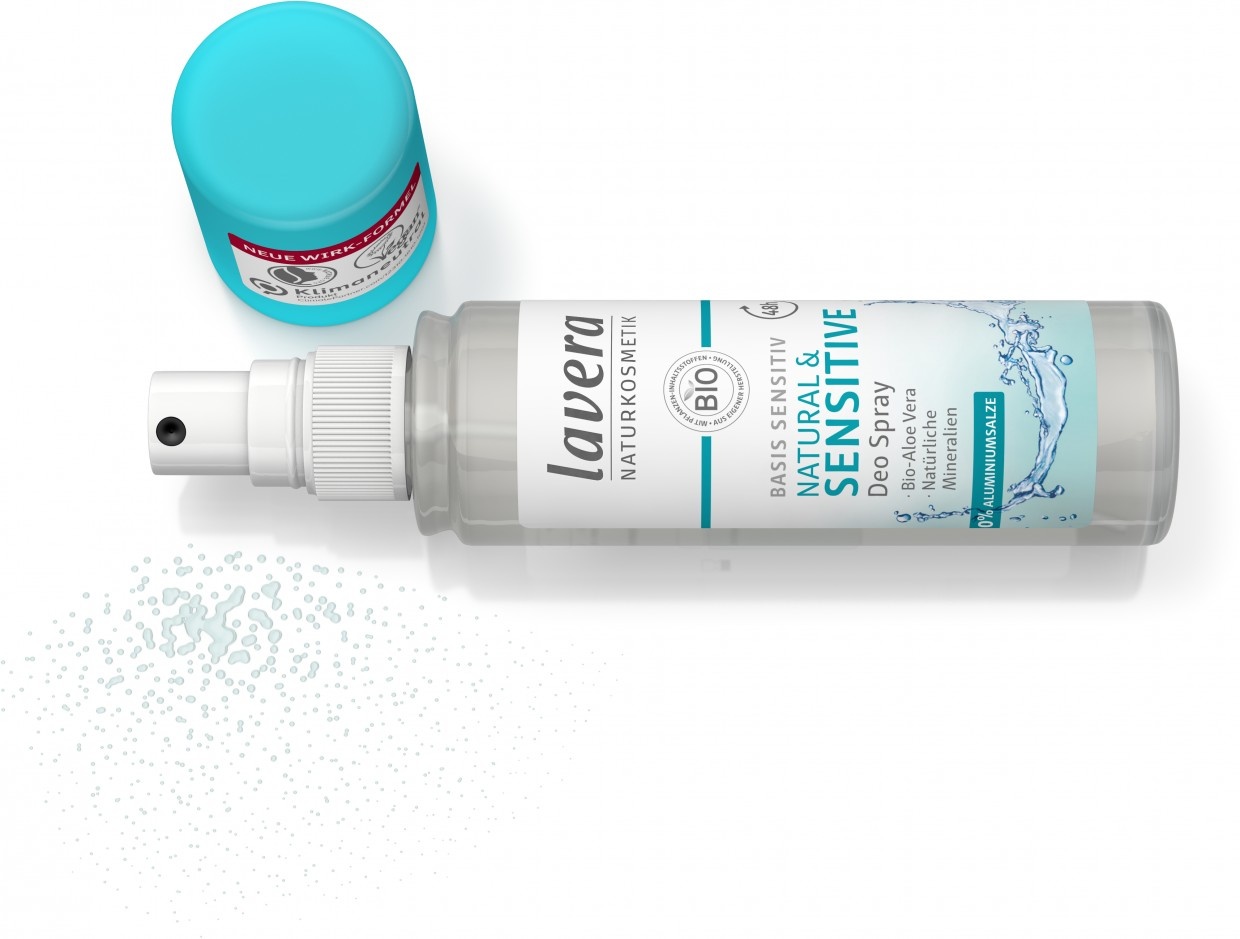De Basis Sensitiv Deo Spray Natural & Sensitive van Lavera is een natuurlijke deodorant spray zonder aluminiumzouten voor 48 uur lang bescherming. Biedt betrouwbare bescherming voor de gevoelige okselhuid. De compositie met biologische aloë vera en natuurlijke mineralen vermindert de groei van geurvormende bacteriën en voorkomt daardoor op natuurlijke en effectieve wijze het ontstaan van een zweetgeur. De milde receptuur is zacht voor de huid.