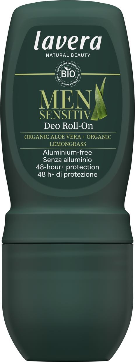 Zacht en zeer effectief: lavera Men Sensitiv deodorant roller. Vrij van aluminium en biedt 48 uur lang, betrouwbare bescherming tegen lichaamsgeuren; zelfs tijdens fysieke inspanning! Verrijkt met verzachtende, biologische aloe vera en citroengras dat helpt om huidirritatie te voorkomen. Natuurlijk vrij van kunstmatige kleurstoffen en conserveringsmiddelen*. (*volgens de EU-Cosmetica verordening)