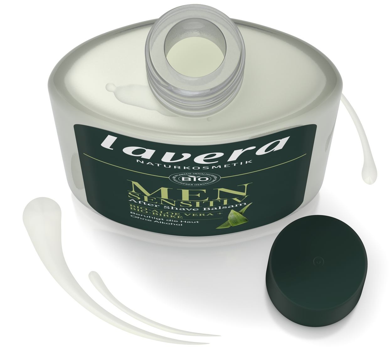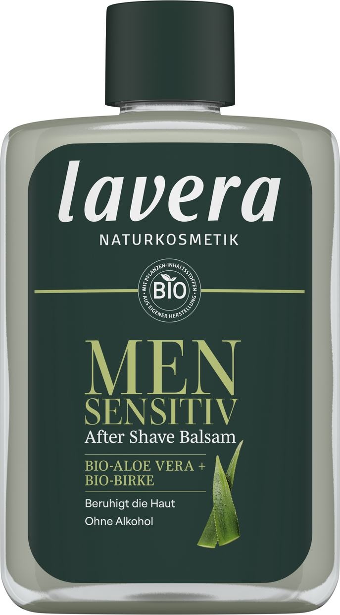 Zacht en zeer effectief: lavera Men Sensitiv After Shave Balm. Zonder alcohol, voorkomt een brandend gevoel van de huid, roodheid en een droge huid. Hydraterende, biologische aloe vera en biologische berk hyrateren, kalmeren en verfrissen. De balsem wordt snel geabsorbeerd en is natuurlijk vrij van kunstmatige kleurstoffen en conserveringsmiddelen*. (*volgens de EU-Cosmetica verordening)