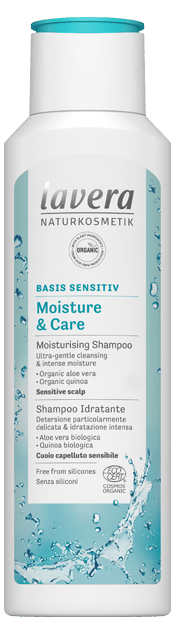 De Basis Sensitiv Shampoo Moisture & Care van Lavera is een milde shampoo die het haar hydrateert en verzorgt. De shampoo hydrateert je haar intensief en is zacht voor de gevoelige hoofdhuid. De innovatieve verzorgende formule biedt een zachte schuimervaring en verbetert de kambaarheid van het haar merkbaar. Milde tensiden zorgen voor een zachte reiniging zonder uit te drogen of te irriteren. Een zorgvuldig uitgebalanceerde compositie met biologische aloë vera en biologische quinoa verzorgt en werkt vochtinbrengend. De Basis Sensitiv Shampoo Moisture & Care is biologisch afbreekbaar en bevat geen siliconen, geen microplastic en geen kunstmatige kleur- en conserveringsmiddelen.