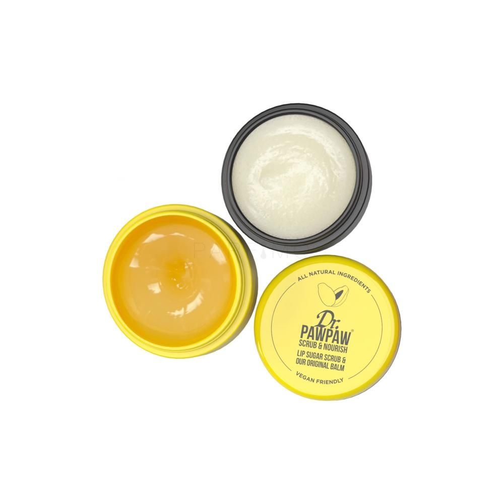 Dr. PAWPAW Scrub & Nourish, geïnspireerd door Koreaanse schoonheidstechnologieën, is een schitterend duo. De peeling bevindt zich in het bovenste gedeelte en de lippenbalsem in het onderste gedeelte. De kleine, praktische verpakking past in iedere handtas en zorgt voor zachte lippen, ook onderweg.