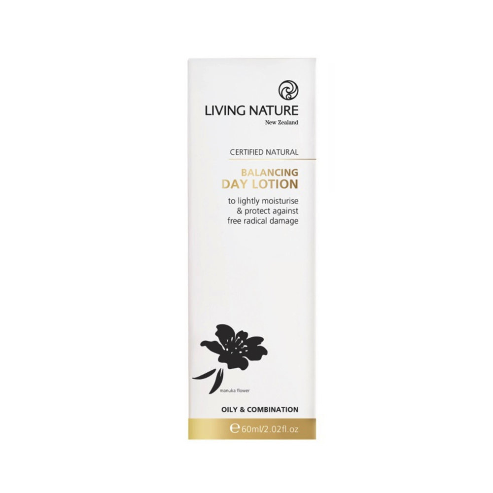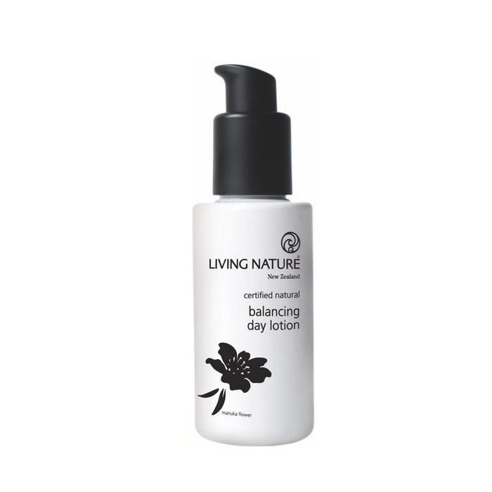 De Balancing Day Lotion van Living Nature is een lichte, snel intrekkende gezichtsverzorging die de natuurlijke vet- en vochtbalans van de huid in evenwicht brengt. Squalaan helpt vocht vast te houden en houdt de huid zacht en soepel. Grapefruit extract is rijk aan vitamine C en zorgt voor een heldere, zuivere huid. Manuka honing voedt en verzacht en manuka extract zuivert. Harakeke vlasgel hydrateert, verzacht en stimuleert het huidherstel. Totara extract werkt antioxidatief. Bevat verder o.a. tarwekiemolie, sheabutter en teunisbloemolie. De Balancing Day Lotion is geschikt voor de normale tot vette en onzuivere huid.