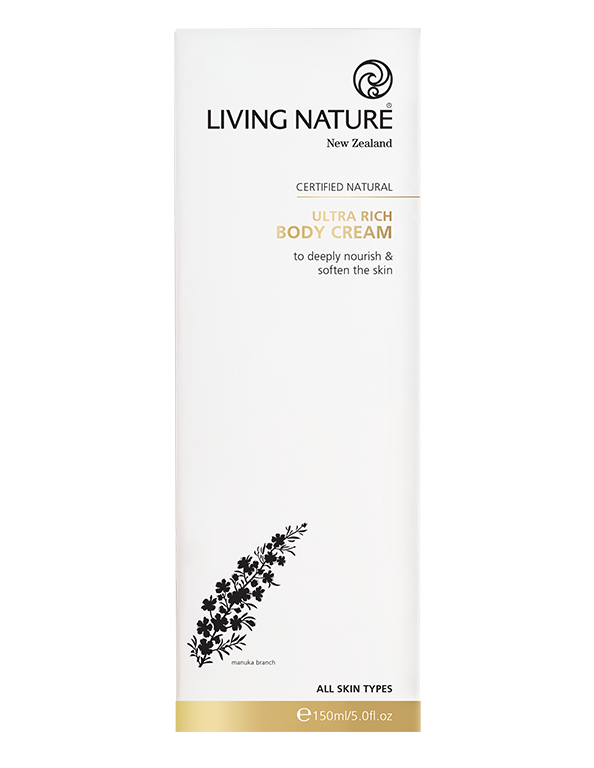 De Ultra Rich Body Cream van Living Nature is een luxe, rijke lichaamscrème die de huid intensief voedt en verzacht. Cacaoboter, murumuru boter, cupuaçu boter, pequi olie en babassu olie hydrateren en voeden de huid intensief, stimuleren het huidherstel en zorgen voor een zachte, soepele en gezonde huid. Grapefruit extract is rijk aan vitamine C en werkt antimicrobieel. Actieve Manuka honing hydrateert, verzacht en stimuleert de huidregeneratie. De Ultra Rich Body Cream heeft een heerlijke natuurlijke geur en is de ultieme lichaamsverzorging voor de droge huid.