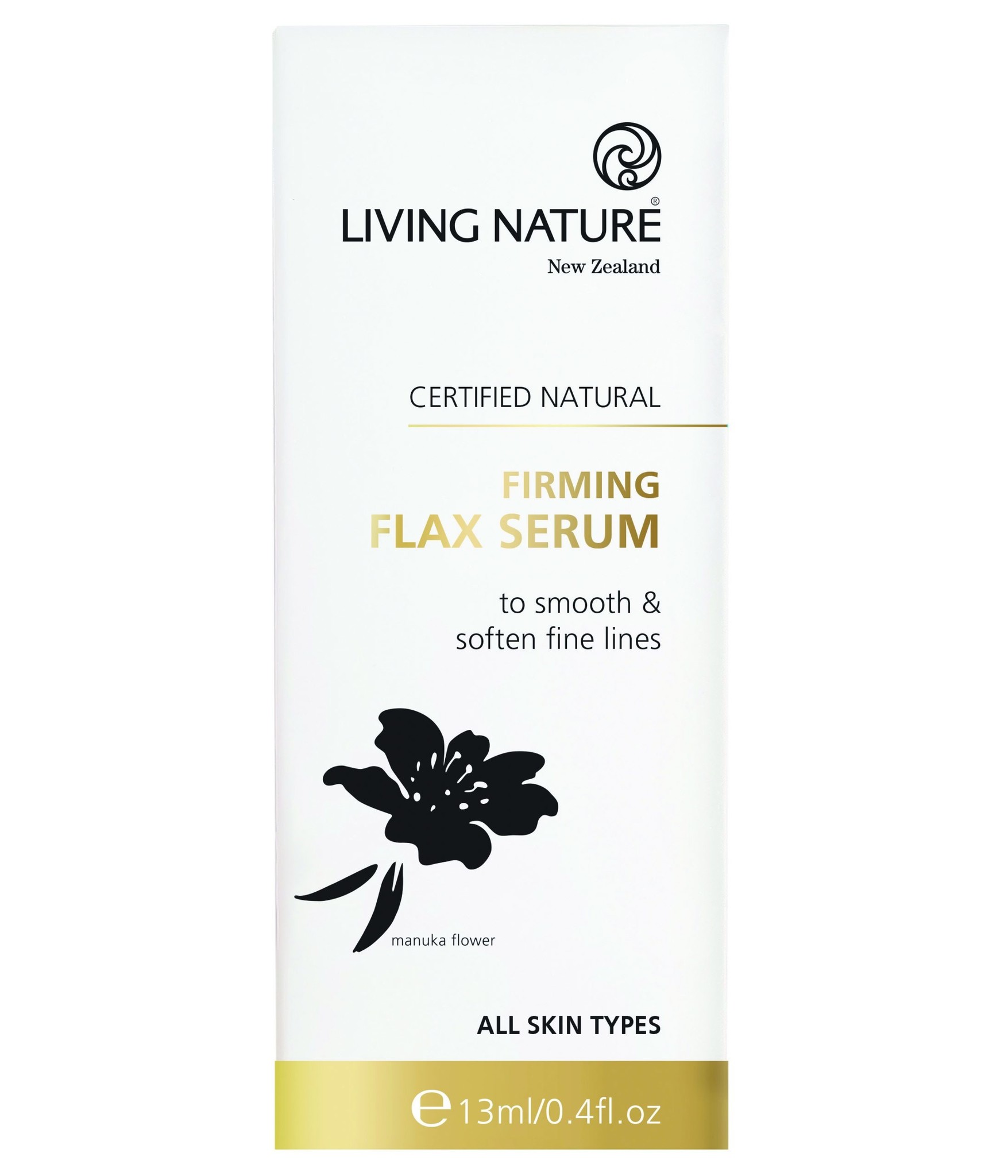 Het Firming Flax Serum van Living Nature stimuleert het huideigen genezingsproces en vermindert fijne lijntjes en rimpels. Het serum zorgt voor een gladdere, vollere huid. Jojoba olie hydrateert intensief en bevordert de huidelasticiteit. Harakeke vlasgel verzacht, voorkomt vochtverlies en stimuleert het huidherstel. Actieve manuka honing voedt, herstelt en stimuleert de huidregeneratie. Calendula kalmeert en verzacht. Druivenpitolie verzacht, egaliseert en zorgt voor een soepele huid. Extract van ogentroost verzacht en bevordert de doorbloeding. Rozenbottelolie stimuleert de collageenproductie en herstelt beschadigd huidweefsel. Bevat verder o.a. wortelextract, tarwekiemolie en teunisbloemolie. Het Firming Flax Serum is geschikt voor alle huidtypes.