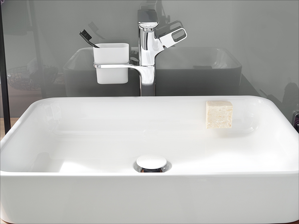 Wordt geïnstalleerd in de wastafel, op de tegels van de douche of badkuip. De zuignap hecht op alle gladde oppervlakken