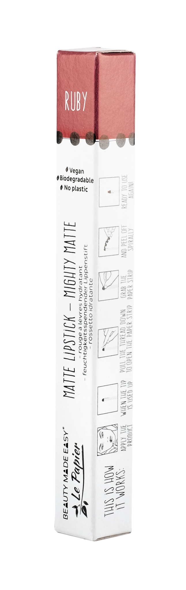 De verpakking van Beauty Made Easy is ontworpen volgens het Zero Waste principe. Wanneer je je lippenstift hebt opgebruikt, heb je ook de verpakking opgebruikt.