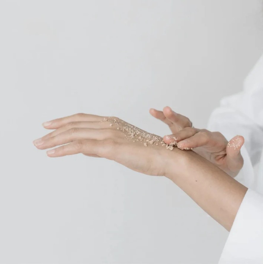 Gebruik: masseer de scrub in cirkelvormige bewegingen op een vochtige huid en spoel na een minuut of twee af met lauwwarm water.
