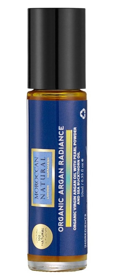 De Organic Argan Radiance van Moroccan Natural is een luxe mix van biologische arganolie met parelpoeder en duindoornolie. Het stimuleert de celgroei en bevordert de collageenproductie en zorgt zo voor een stevigere, gladdere huid met een gezonde glans. Het verbetert de wondgenezing en gaat huid schade door de zon tegen. De hoge doses van essentiële vitaminen hebben een positieve invloed op de huid met acne en op de littekens als gevolg van acne. De combinatie van arganolie, parelpoeder en duindoornolie werkt bovendien kalmerend en verzachtend. Dankzij de roller applicator is de Organic Argan Radiance gemakkelijk aan te brengen.