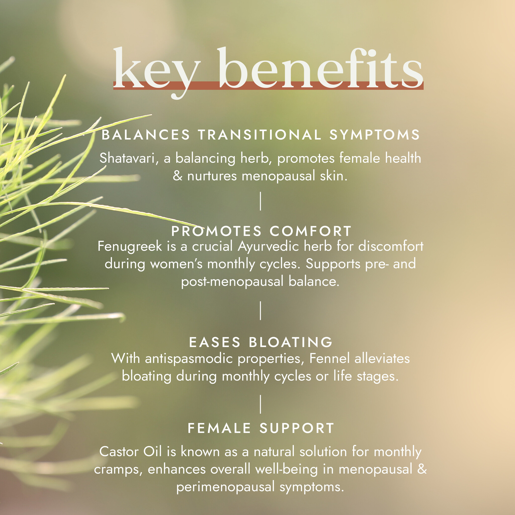 Belangrijkste ingrediënten: Ayurvedische Fresh-Ground® Shatavari, venkel en fenegriek in een voedingsrijke basis van vijf voedende Fresh-Pressed®-oliën.