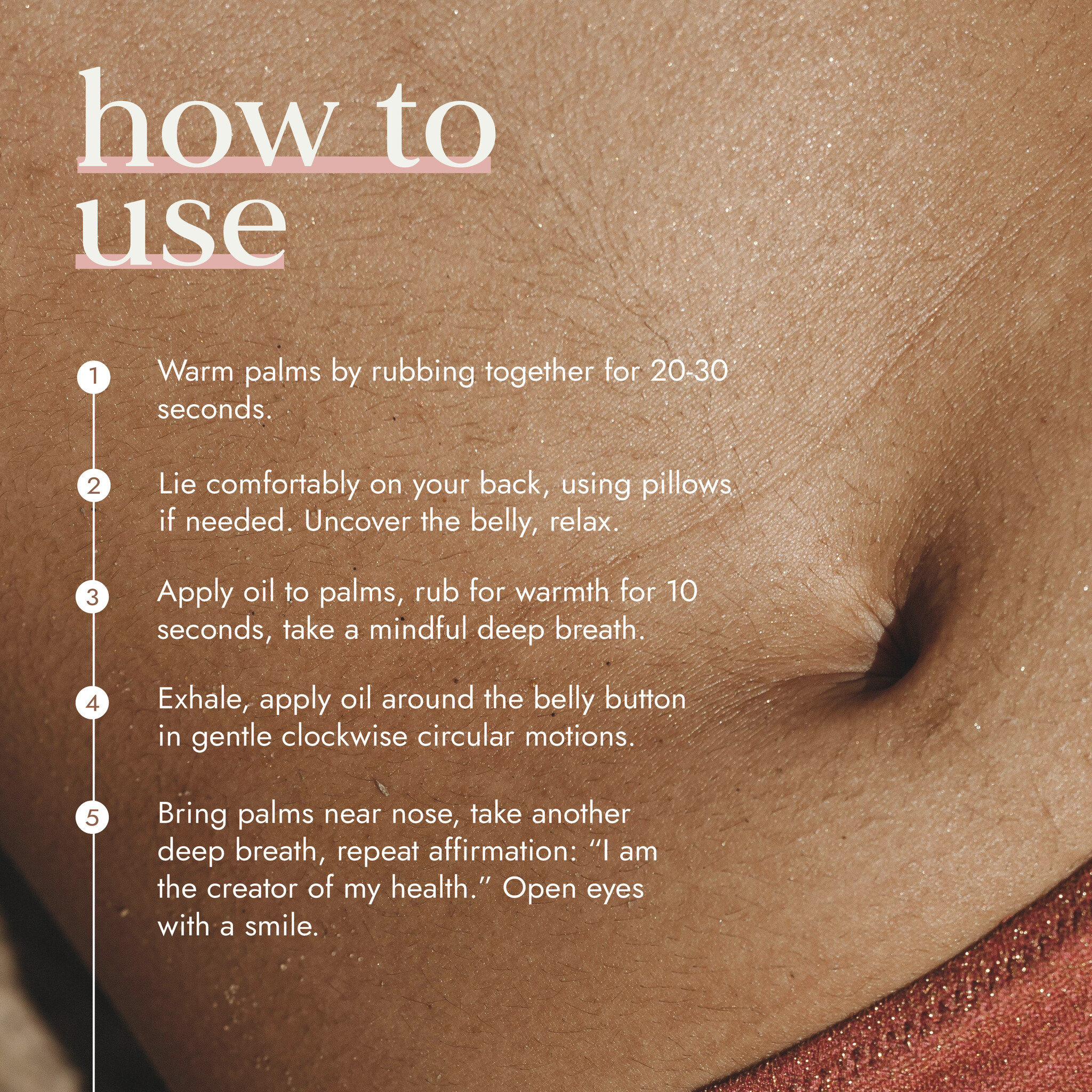 Verwarm de olie altijd en masseer in met de klok mee.