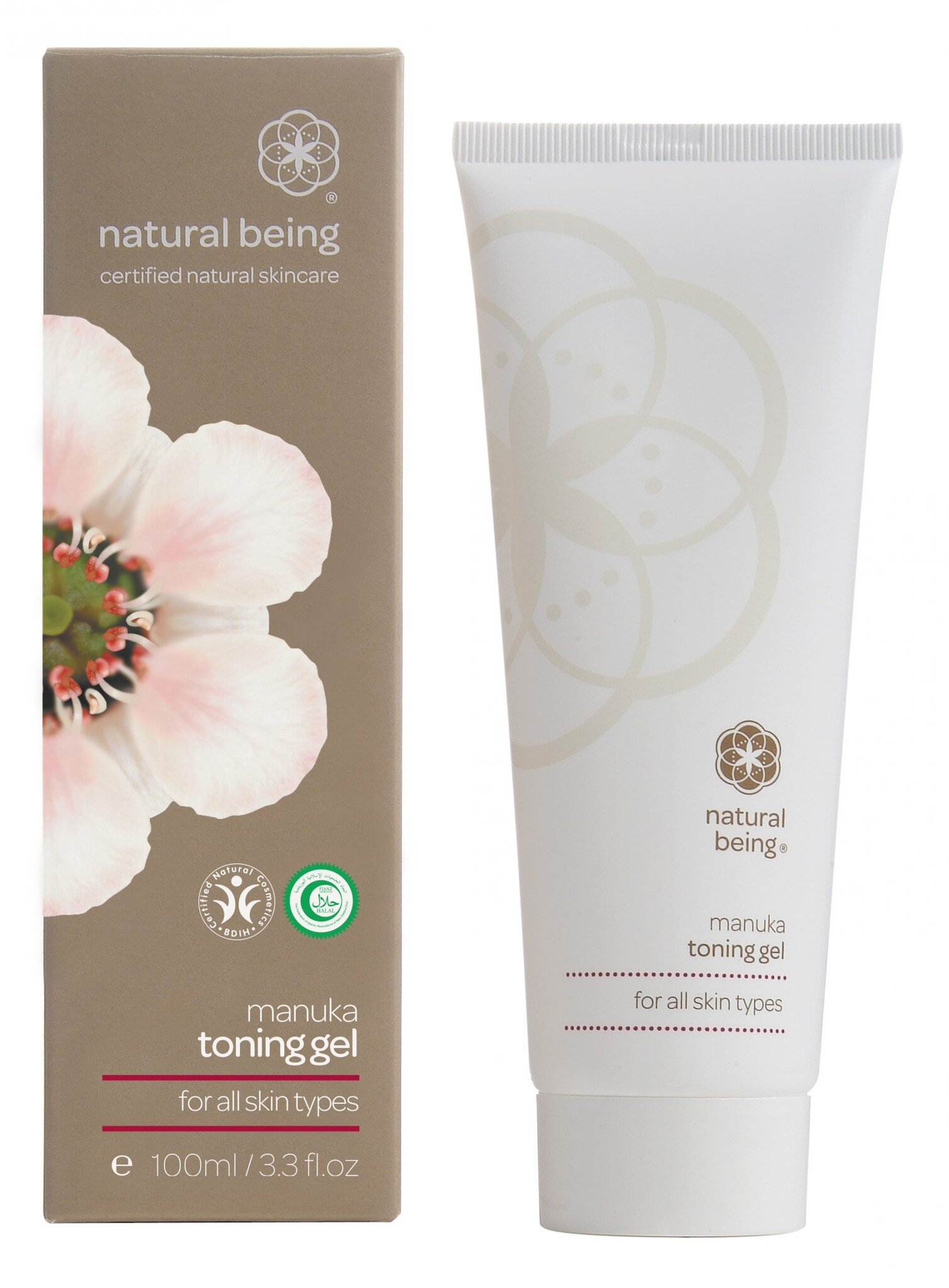 De Manuka Toning Gel van Natural Being tonifieert en verfrist de gereinigde huid. Deze lichte, niet-uitdrogende toner verfijnt de poriën en zorgt voor een stralende, gezonde huid. Jojoba olie hydrateert de huid intensief, vermindert ontstekingen en verbetert de huidelasticiteit. Manuka honing voedt en verzacht en manuka olie werkt antibacterieel en zuiverend. Grapefruit extract is rijk aan vitamine C en zorgt voor een zuivere, heldere huid. De Manuka Toning Gel heeft een lichte, eenvoudige formule en is ideaal voor de tienerhuid.