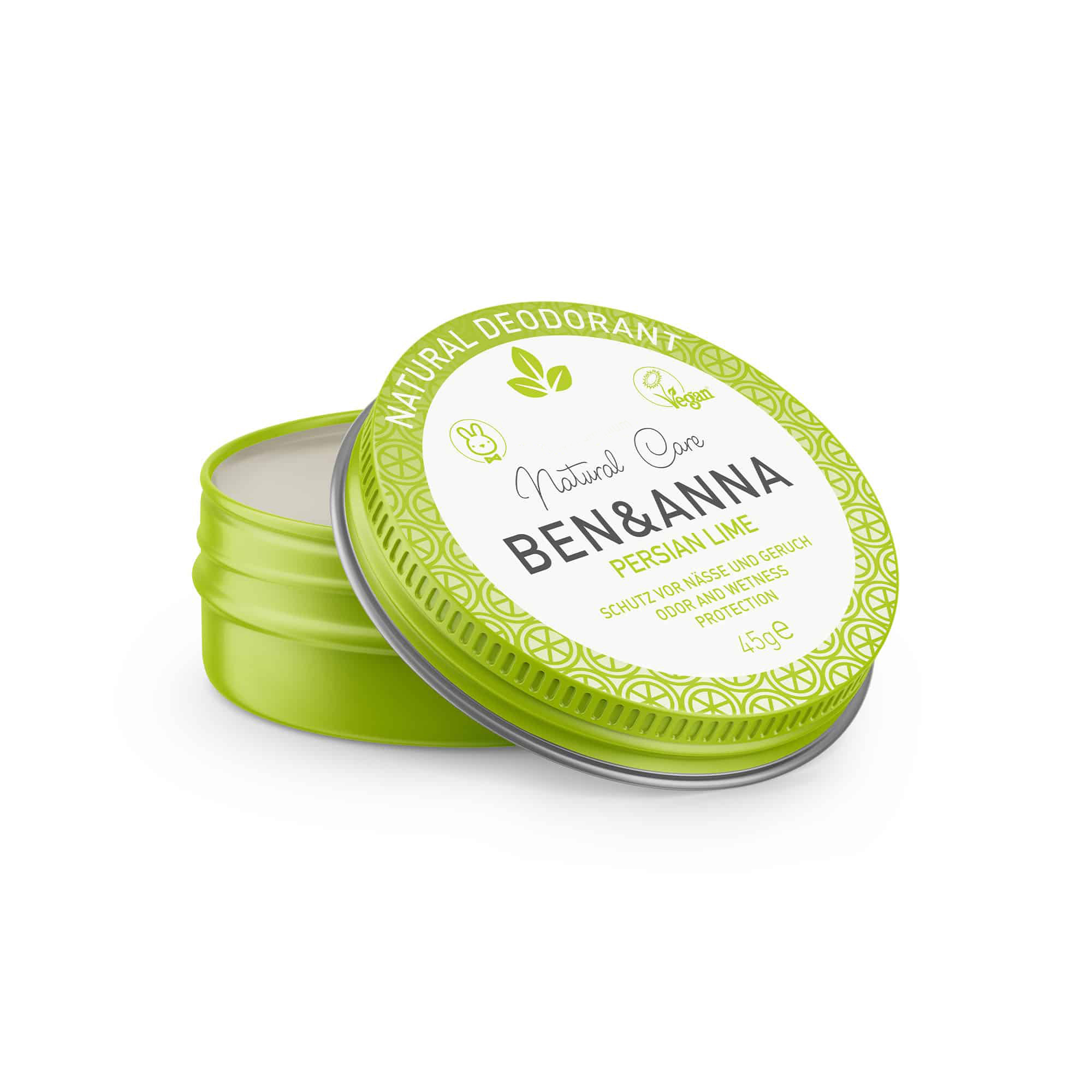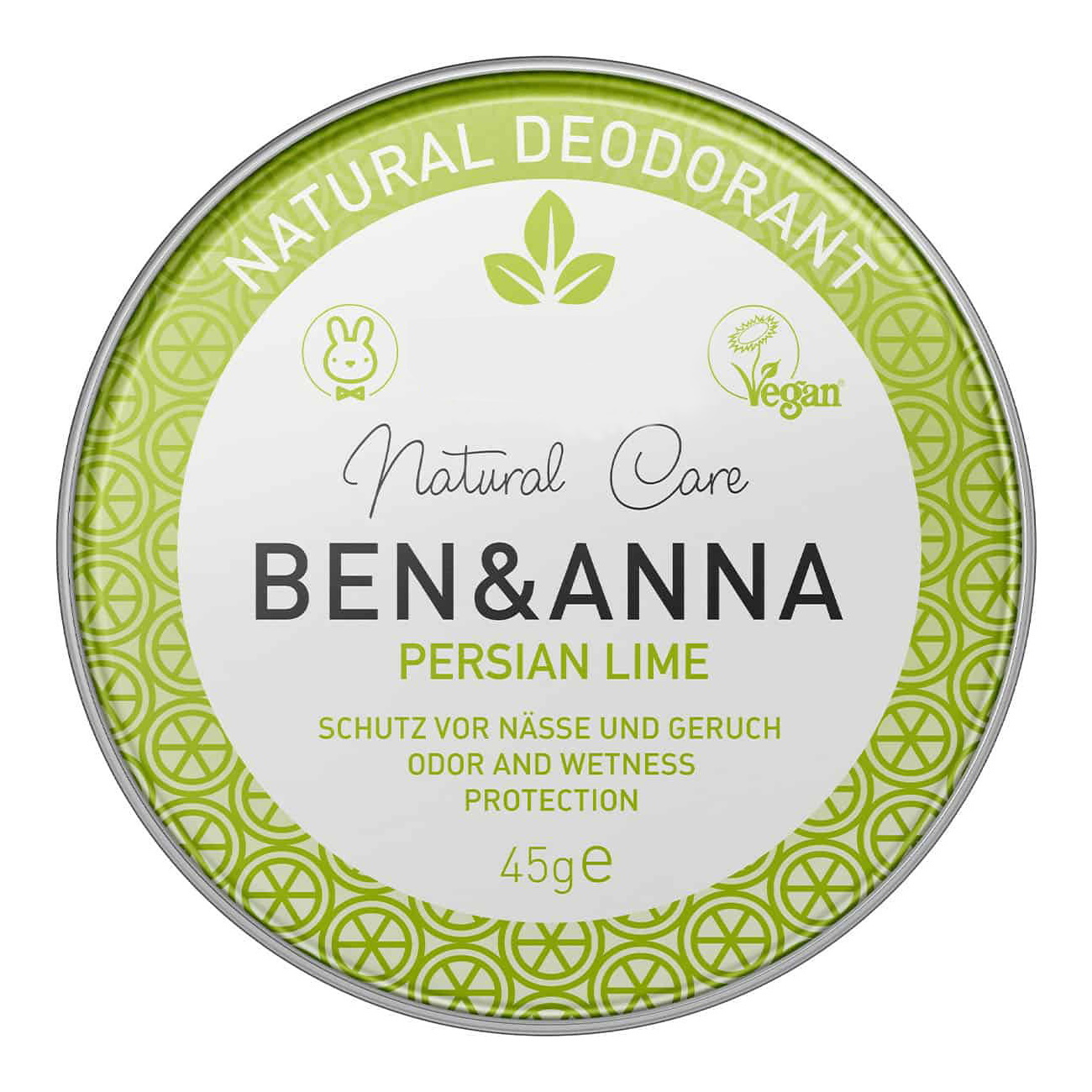De Natural Deodorant Persian Lime van BEN&ANNA is een natuurlijke deodorant in een blikje met frisgeurende ingrediënten, waaronder limoen. De unisex geur van deze deodorant past bij mannen en vrouwen. De geur en de werking geven je nieuwe energie zodat je er weer tegenaan kunt! De deodorant heeft een vaste textuur dankzij sheabutter en natriumbicarbonaat (baking soda). Gemakkelijk aan te brengen, is nooit plakkerig of vet en zorgt bovendien voor een prettig huidgevoel. De BEN&ANNA deodorants zijn 100% natuurlijk en bevatten biologische ingrediënten. De Natural Deodorant Persian Lime is vegan.
