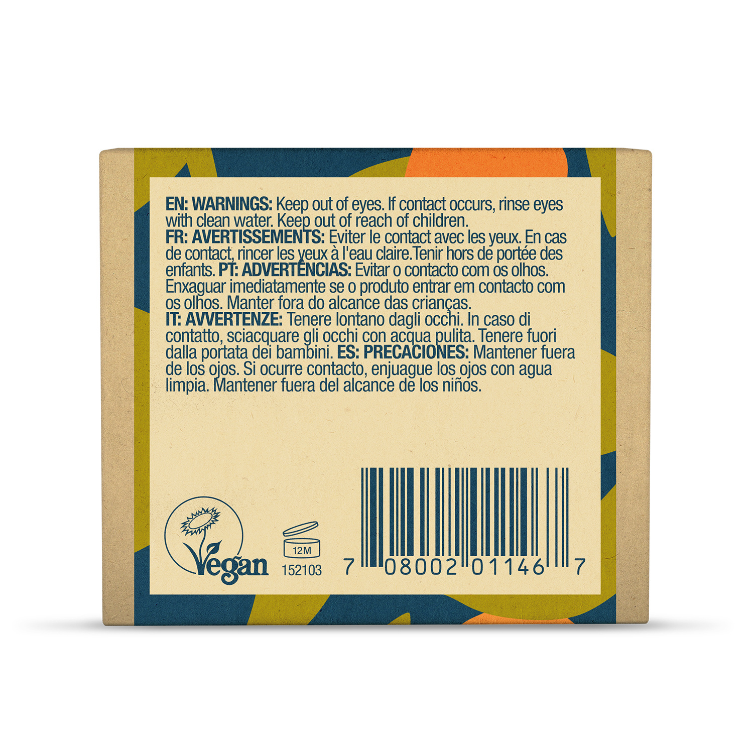 Ingrediënten: Sodium Palmate**, Sodium Cocoate* and/or Sodium Palm Kernelate**, Aqua (Water), Glycerin*, Citrus Aurantium Dulcis Peel Oil*, Sodium Chloride, Sodium Citrate*, Helianthus Annuus Seed Oil*, Carotenoids*, Limonene*, Linalool*.