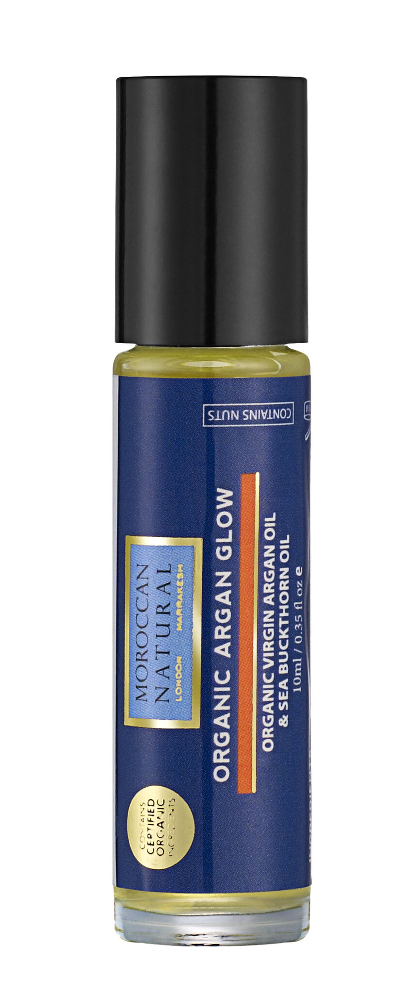 De Moroccan Natural Organic Argan Glow Rollerball is een serum voor het gezicht en heeft een handige rollerball-applicator. De mix van Arganolie en Duindoornolie, twee wonderolies, die samen de doffe en vale huid verhelpen. Arganolie is ontzettend rijk aan vitamine E en antioxidanten. Duindoornolie beschermt de huid tegen schade die wordt veroorzaakt door de zon en ioniserende straling. De vetzuren voeden en verzachten de huid en versterken de antioxidanten zoals betacaroteen deze eigenschap. Verder werkt de mix werkt verzachtend en ontstekingswerend. De huid wordt wordt herstelt, geconditioneerd en krijgt een gezonde gloed. Tevens laat zich het serum met de rollerball-applicator gemakkelijk en precieze aanbrengen. De Moroccan Natural Organic Argan Glow is vrij van parabenen en geen kunstmatige chemische stoffen.