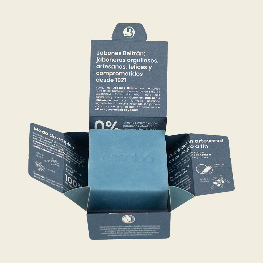 Een stuk Essabó-zeep is het meest natuurlijke product voor reiniging en lichaamshygiëne. Het produceert een overvloedig en romig schuim dat onze huid reinigt, voedt en verzorgt. Tegelijkertijd veroorzaakt het geen irritaties veroorzaakt door direct contact met synthetische ingrediënten die veel voorkomen in gels.
