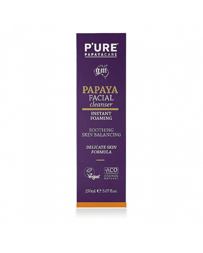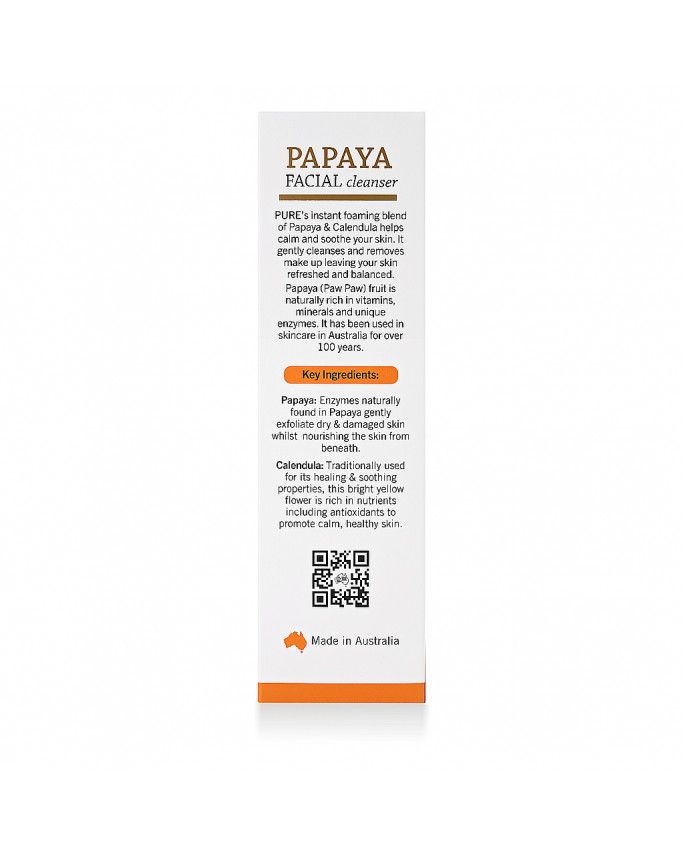 P'URE Papayacare Papaya Facial Cleanser is een direct schuimende mix van papaja en Calendula die je huid kalmeert en verzacht. Het reinigt en verwijdert make-up in alle zachtheid en laat je huid verfrist en in balans achter. Bereid je huid voor op een betere vochtopname als onderdeel van je huidverzorgingsroutine. Aanbevolen voor alle huidtypes. Kan worden gebruikt voor gezicht, hals en lichaam.