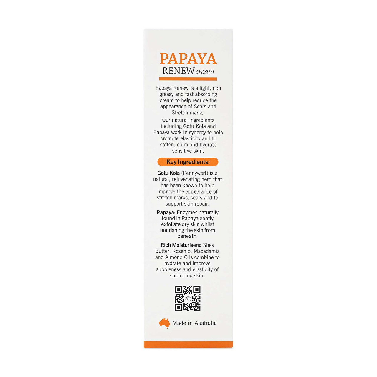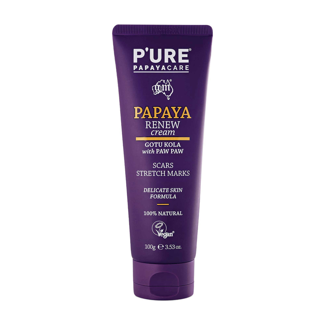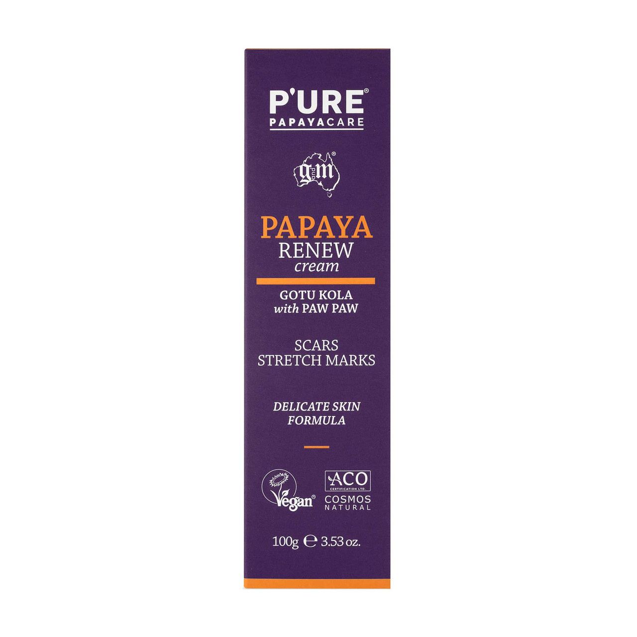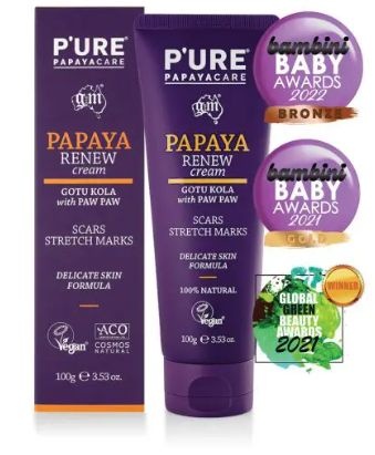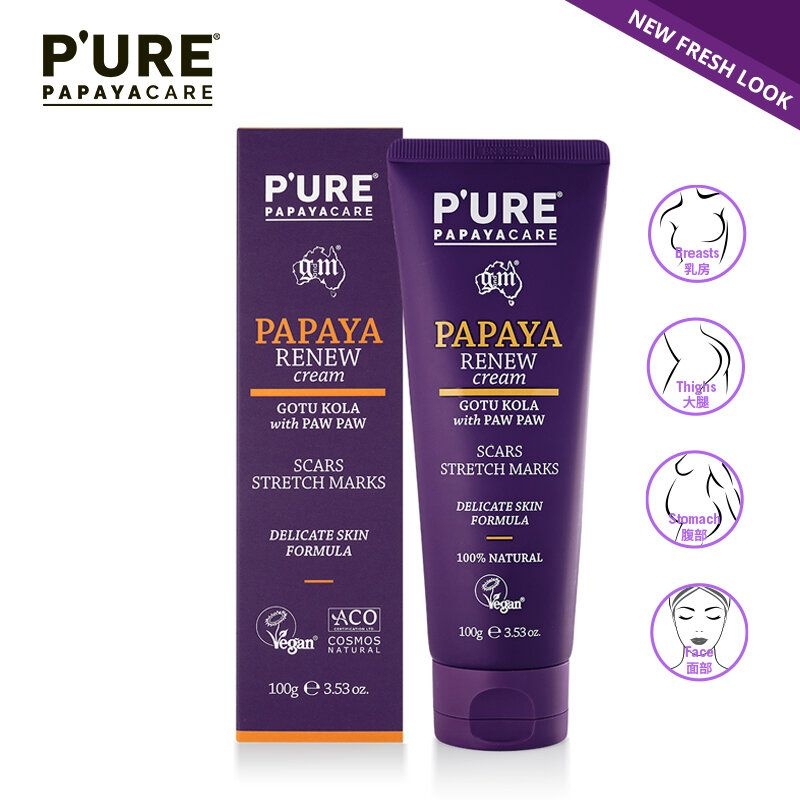 P'URE Papayacare Papaya Renew is een lichte, niet-vette & snel absorberende crème om littekens en striae te helpen vervagen. Samengesteld zonder petroleum, parabenen, sulfaten, kunstmatige kleur- en geurstoffen. Onze natuurlijke ingrediënten, waaronder Gotu Kola en papaja, werken samen om de elasticiteit te helpen bevorderen terwijl ze de gevoelige huid verzachten, kalmeren en hydrateren. Papaya Renew Cream wordt aanbevolen voor littekens, striae & huidstriemen. Kan worden gebruikt op gezicht en lichaam.