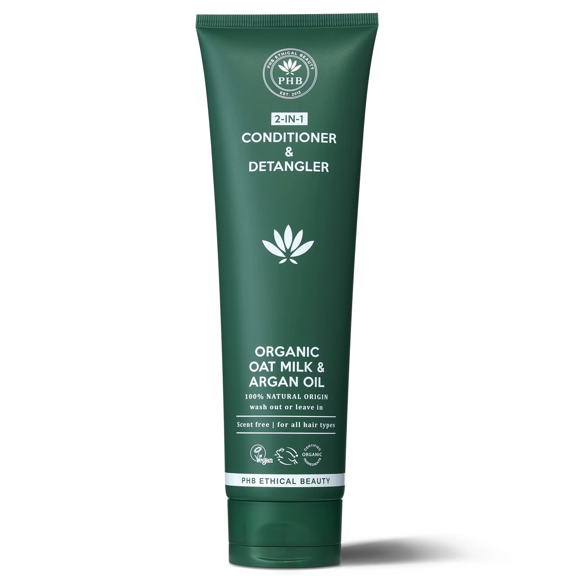 De Conditioner & Detangler van PHB Ethical Beauty is het perfecte product voor sensationeel zacht en glanzend haar. De lichte, romige formule met diep voedende biologische kokosolie belooft haar dat handelbaar, zacht en gezond is. Een complex van biologische havermelk en arganolie zorgt voor sterk, zacht en vitaal haar en een gezonde, rustige hoofdhuid. Biologische aloë vera zorgt voor extra hydratatie. De Conditioner & Detangler bevat geen etherische oliën en is geschikt voor alle haartypes. Ook geschikt bij eczeem en een zeer gevoelige hoofdhuid.