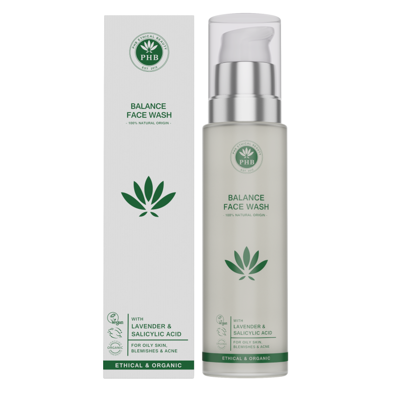 De Balance Face Wash van PHB Ethical Beauty is een schuimende gezichtsreiniging die op milde wijze vuil, make-up en onzuiverheden verwijdert. Deze reiniging verfrist, verwent en brengt de huid weer in evenwicht. Milde tensiden zorgen voor een zachte, maar effectieve reiniging. Biologische aloë vera werkt hydraterend, verzachtend en herstellend. Salicylzuur werkt exfoliërend, zorgt voor een egalere huid en vermindert onzuiverheden. Biologische lavendelolie zorgt voor een heldere, rustige en evenwichtige huid. Bevat verder o.a. rozemarijnolie, rozenbottelolie, tea tree olie en saffloer olie. De Balance Face Wash is geschikt voor de vette en onzuivere huid.
