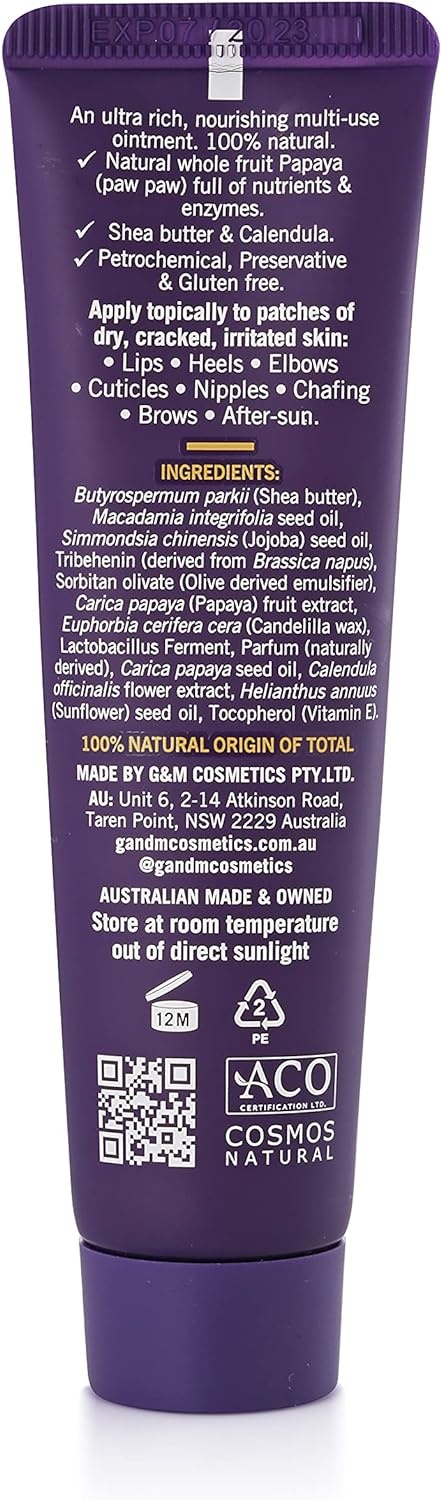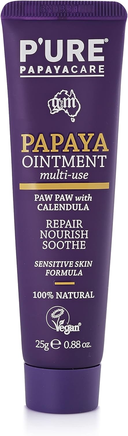 P'URE Papayacare Papaya Zalf bevat een rijke voedende mix van papaja, sheaboter en Calendula die de droge, gebarsten en geïrriteerde huid en lippen onmiddellijk voedt, herstelt en verzacht. Samengesteld zonder petroleum, parabenen, sulfaten, kunstmatige kleur- en geurstoffen. Deze balsem voor veelzijdig gebruik is ultrarijk en verzacht, herstelt en beschermt je huid op natuurlijke wijze. Eén tube, vele toepassingen - lippen, hielen, ellebogen, nagelriemen, tepels, wenkbrauwen, aftersun. Aanbevolen voor droge, gebarsten en geïrriteerde huid en lippen. Geschikt ook voor Baby's & na een laserbehandeling.
