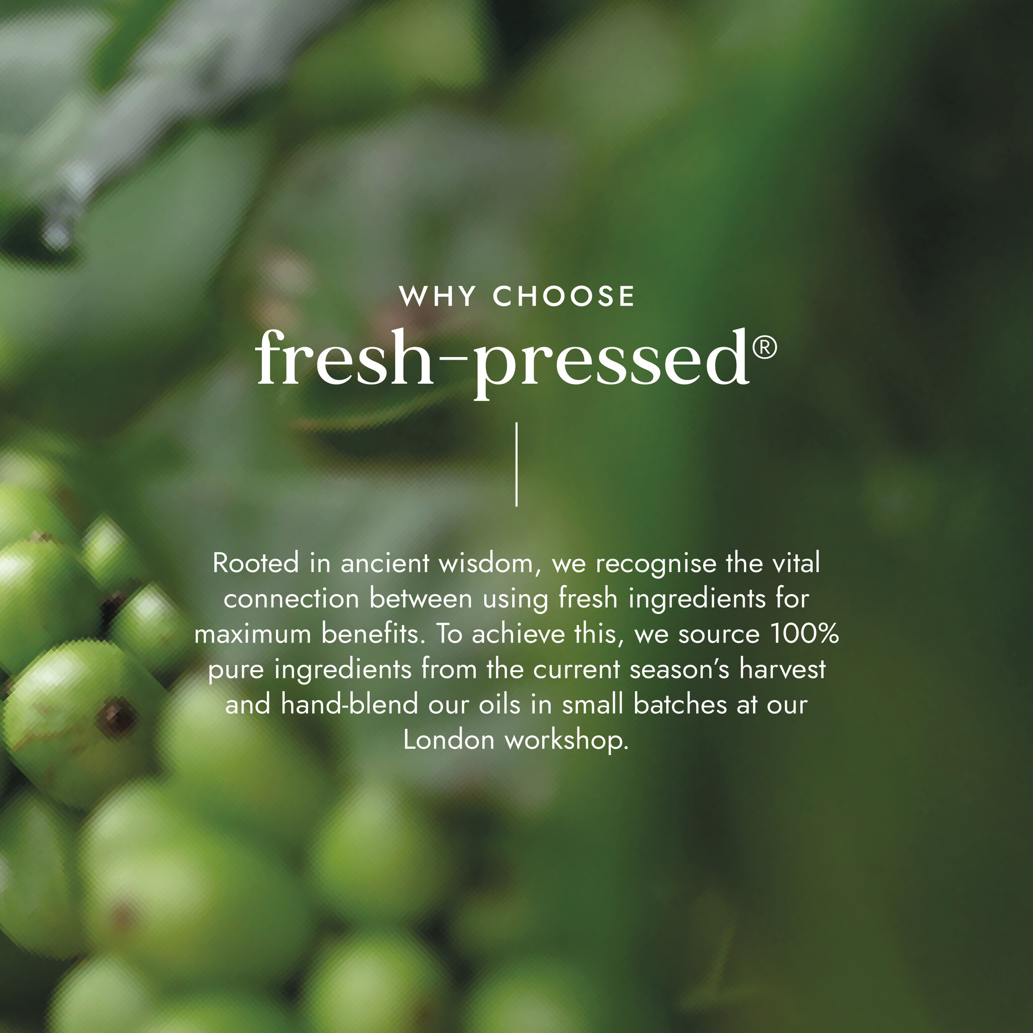 De Fushi Wellbeing producten worden in kleine producties gemaakt in eigen atelier en zijn 100% natuurlijk met een flinke dosis Ayurvedische kruiden. Ze mengen de puurste, vers geperste oliën en verse gemalen kruiden met de hand in hun werkplaats in Londen. De Biodynamische zaden, pitten en noten zijn van nature in de zon of aan de lucht gedroogd en de 100% pure en biologische oliën zijn koudgeperst en ongeraffineerd. De versgemalen kruiden worden gebruikt voor hun unieke drievoudige kruidenolie die we maken voor onze huid-, haar- en lichaamsverzorging. Ze halen hun ingrediënten uit de oogst van het huidige seizoen, wat betekent dat alles wat ze maken minder dan drie maanden oud is. Fushi maakt dus geen gebruik van chemische en kunstmatige ingrediënten zoals parabenen, siliconen en sulfaten en is vrij van conserveringsmiddelen en andere nasties. Alles is verpakt glazen verpakkingen en de producten zijn vegan. Alles is uiteraard van ingrediënt tot eindproduct dierproefvrij.