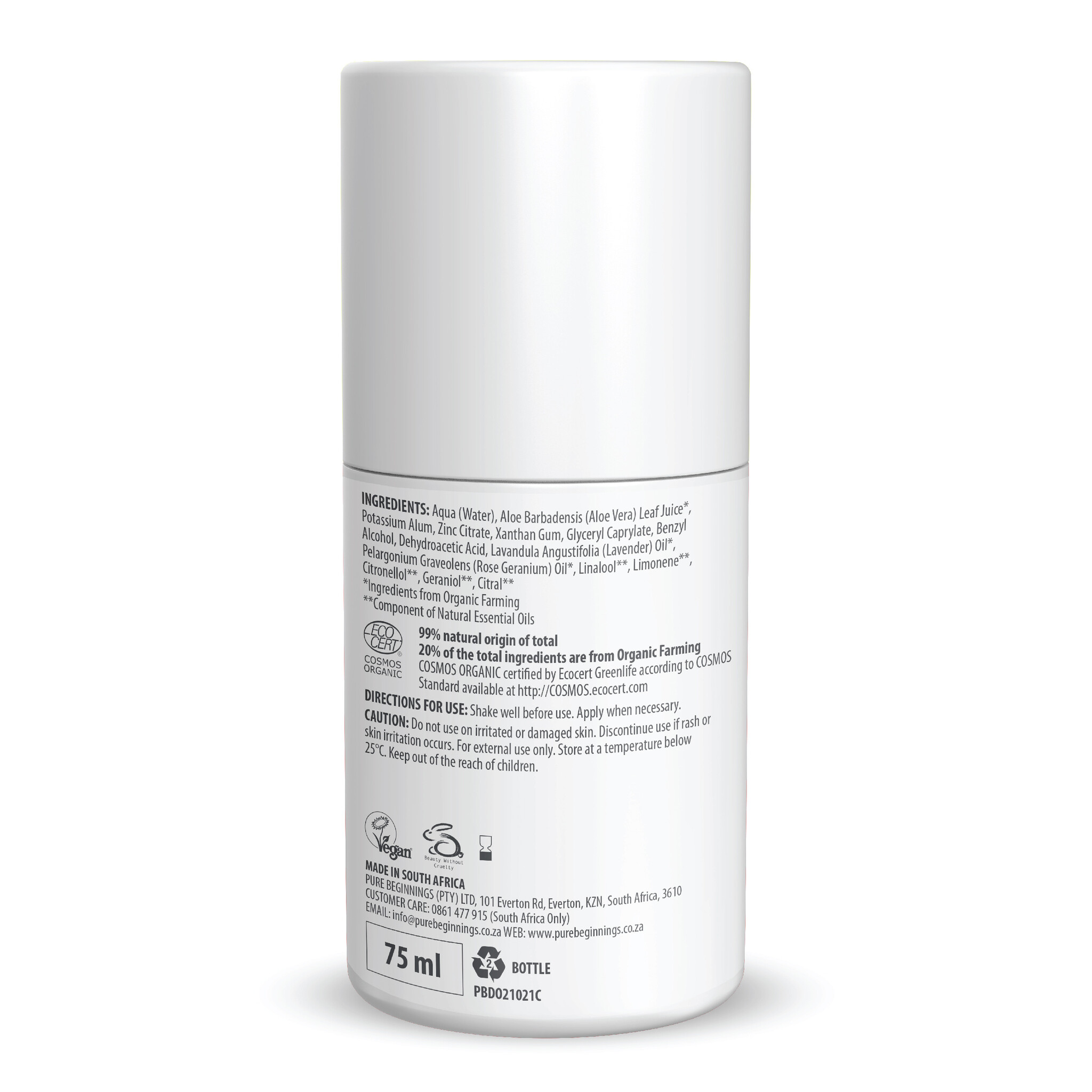 Met zachte tonen van rozengeranium en lavendel zorgt deze gecertificeerde biologische deodorant ervoor dat je je de hele dag fris voelt. Voor langdurige bescherming bevat het het natuurlijke mineraalzout kaliumaluin dat zich richt op de bacteriën die lichaamsgeur veroorzaken. Deze deodorant is vrij van aluminiumchloride/chloorhydraat.