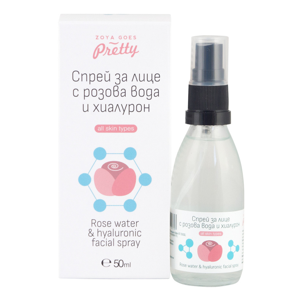 De spray met rozenwater en hyaluronzuur van Zoya verkoelt je gezicht op warme dagen, en heeft een verfrissend effect. De waardevolle ingrediënten van de roos verzorgen je huid en voorzien deze van vocht.