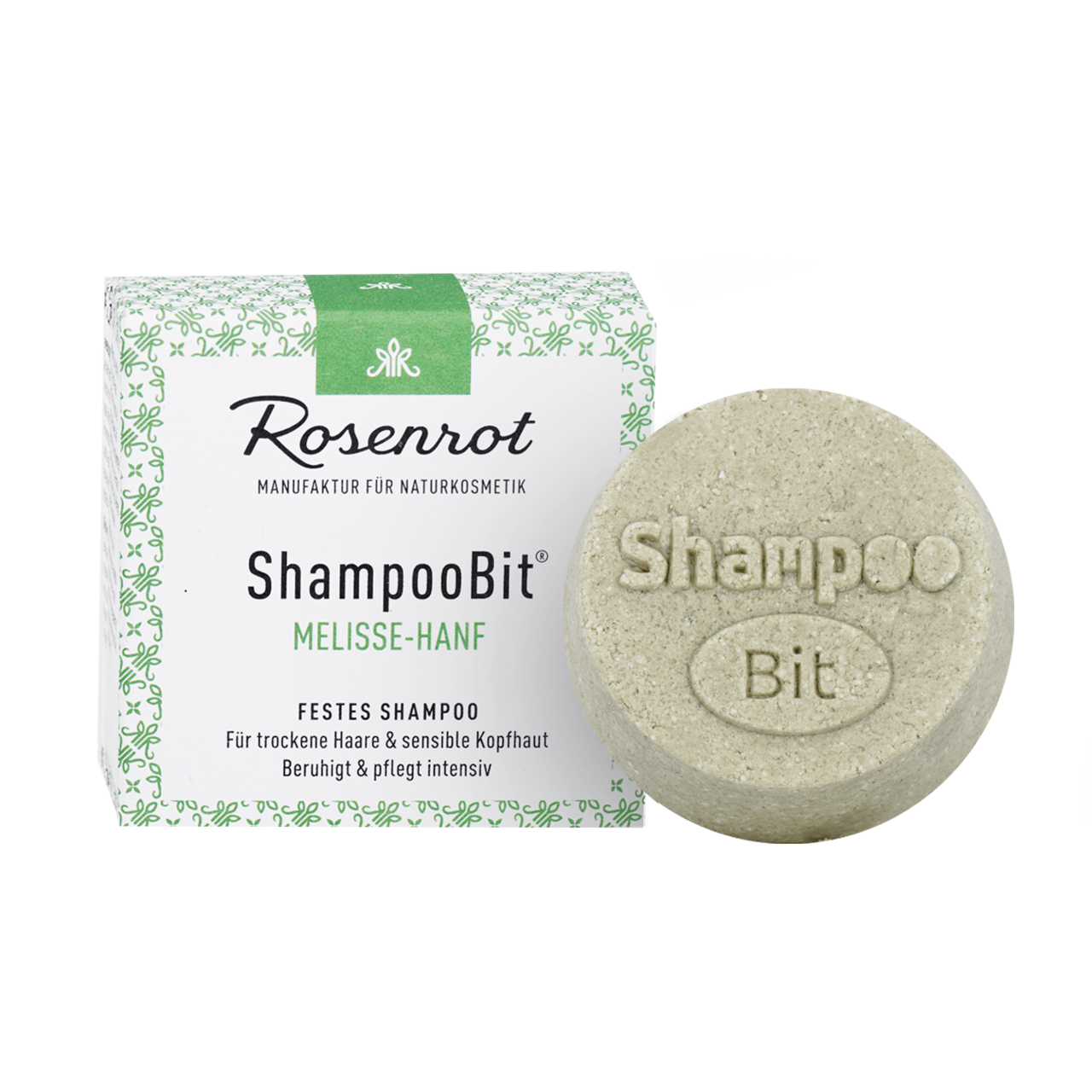 De ShampooBit® Vaste Shampoo Melisse-Hennep van Rosenrot is een natuurlijke vaste shampoo voor droog haar en een gevoelige hoofdhuid die vatbaar is voor hoofdroos. Vermindert hoofdhuidirritaties en jeuk en verwent droog haar. Voor prachtig glanzend en zacht haar. Met kalmerend biologisch melisse extract, zuiverende klei en verzorgende biologische hennepzaadolie.