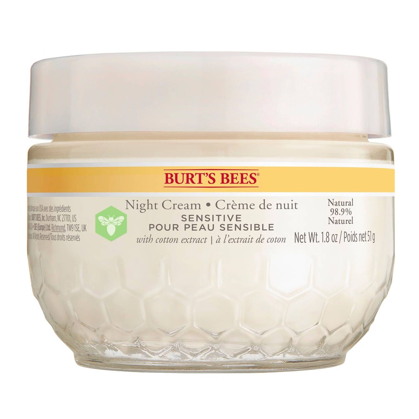 Burt´s Bees Sensitive Night Cream hydrateert de gevoelige huid zonder te irriteren of roodheid te veroorzaken. De speciale formule met katoenextract helpt de buitenste huidlaag te voeden en minimaliseert het effect van potentieel irriterende stoffen, zoals ruwe zepen en detergenten. Rijstextract hydrateert en Aloë Vera kalmeert de huid. Slaap lekker in de wetenschap dat de gevoelige huid diep gehydrateerd en goed verzorgd wordt met deze nachtcrème.