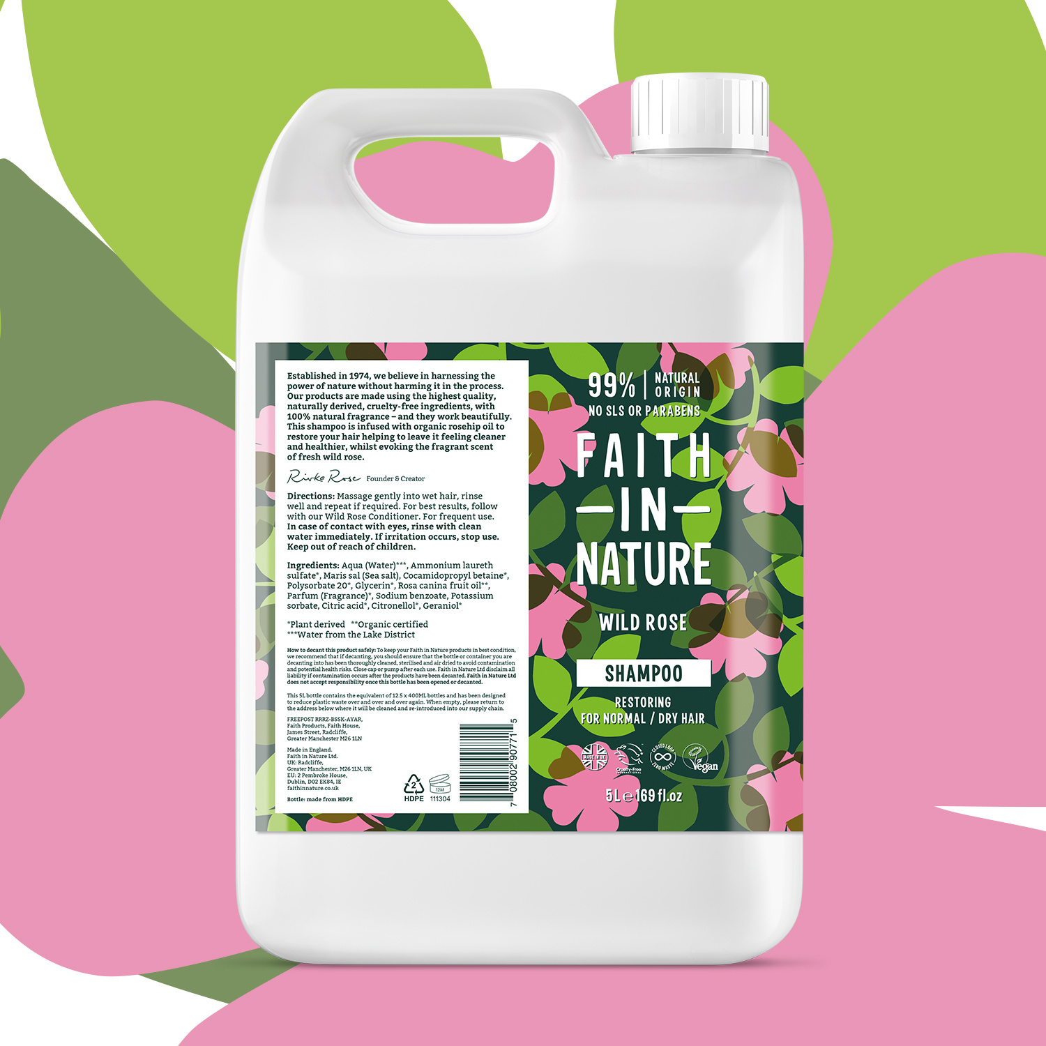 Deze shampoo is doordrenkt met biologische rozenbottelolie om je haar te herstellen, zodat het schoner en gezonder aanvoelt, terwijl het de geur van verse wilde roos oproept. Deze producten zijn gemaakt met behulp van de hoogste kwaliteit, natuurlijk afgeleide, cruelty free ingrediënten, met 100% natuurlijke geur, 99% Natural Origin - en ze werken prachtig!