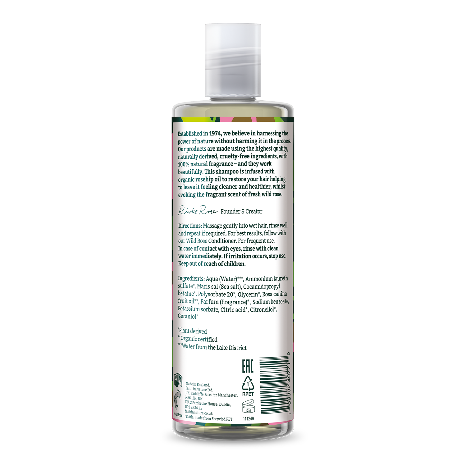 Onze Wild Rose Shampoo is een voedende shampoo die de verjongende voordelen van rozenbottelolie voor het haar benut, zodat het haar er zachter en gezonder uitziet.