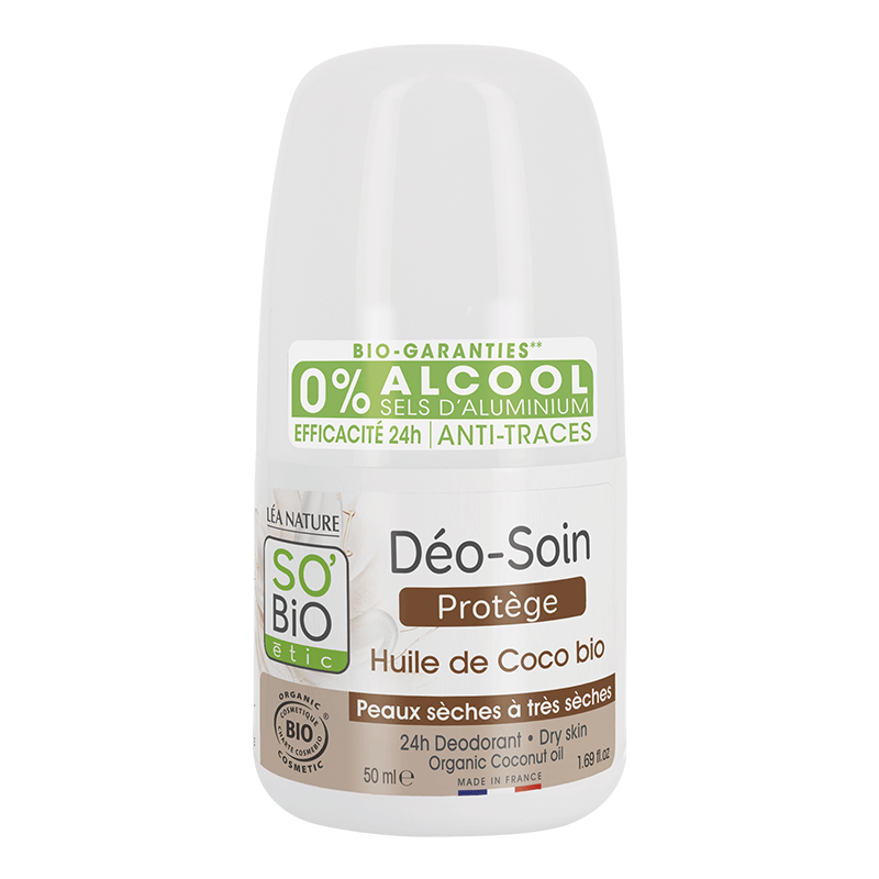 De 24h Deo Roll-On Coconut Dry & Sensitive Skin van So'BiO étic is een natuurlijke deodorant roller voor de droge en gevoelige huid. Vrij van aluminiumzouten en alcohol. De deo neutraliseert lichaamsgeuren die veroorzaakt worden door bacteriën. Effectieve bescherming zonder de natuurlijke transpiratie te blokkeren. De formule is verrijkt met biologische kokosolie om de huid te voeden en beschermen.