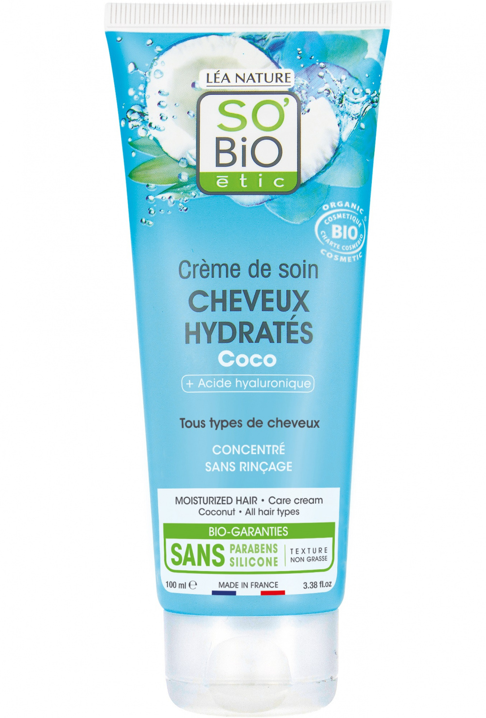 De Hydrated Hair Coco Conditioning Cream van So'BiO étic is een verzorgende leave-in haarcrème voor zijdezacht, beschermt en handelbaar haar. De crème creëert een lichte beschermende film om het haar te voeden zonder het haar te verzwaren of vet te maken. Kokosolie versterkt droog haar van binnenuit en helpt schade te repareren en de haarstructuur opnieuw op te bouwen. Het werkt bovendien hydraterend en voorkomt zo gespleten punten. Hyaluronzuur hydrateert haar en hoofdhuid intensief. Bevat verder o.a. aloë vera, glycerine en zonnebloemolie. De Hydrated Hair Coco Conditioning Cream is geschikt voor alle haartypes.