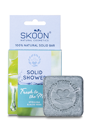 De Solid Shower 'Fresh to the Max' van Skoon is een natuurlijke vaste douchegel die verfrist dankzij eucalyptus en een klein beetje menthol. Spirulina zuivert, verfrist en zorgt voor een stralende huid. Aloë vera hydrateert tot in de diepte huidlagen. Bevat verder o.a. shea butter. De Solid Shower 'Fresh to the Max' is vegan en geschikt voor alle huidtypes.