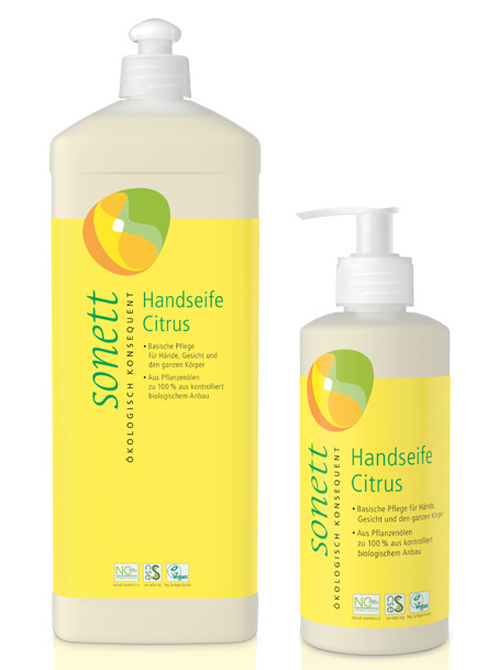 De Handzeep Citrus van Sonett is een milde, verzorgende en basische zeep voor handen, gezicht en het gehele lichaam. De zeep is verrijkt met etherische citroengras olie voor een fijne, verfrissende geur. De zeep is 100% biologisch afbreekbaar.