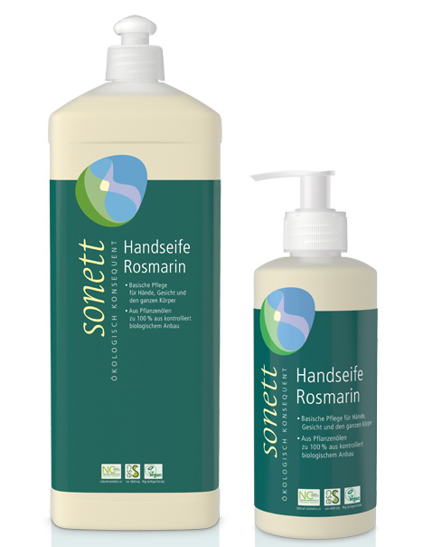 De Handzeep Rozemarijn van Sonett is een milde, verzorgende en basische zeep voor handen, gezicht en het gehele lichaam. De zeep is verrijkt met etherische rozemarijnolie voor een activerende, stimulerende geur. De zeep is 100% biologisch afbreekbaar.