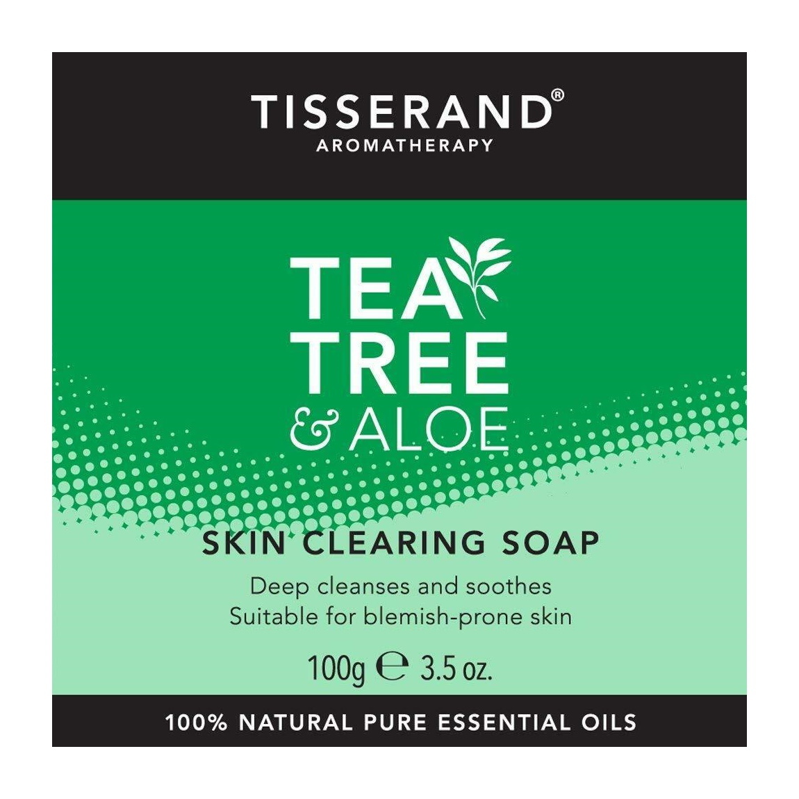 De Tea Tree & Aloe Skin Clearing Soap van Tisserand is een natuurlijke zeep die de huid reinigt, zuivert en verzacht. Deze plantaardige zeep reinigt verstopte poriën en de snel onzuivere huid zacht maar intensief voor een egalere, helderdere en gezond uitziende teint. Reinigt de huid zonder deze te strippen. De experts bij Tisserand Aromatherapy hebben 100% natuurzuivere tea tree olie, bekend om zijn reinigende en zuiverende eigenschappen, gemengd met aloë vera extract om de huid te kalmeren en verzachten. De Tea Tree & Aloe Skin Clearing Soap is vegan en geschikt voor de normale tot vette en onzuivere huid.