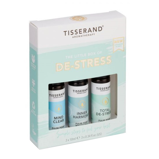 De The Little Box of De-Stress van Tisserand is een aromatherapie roller set met drie verschillende rollers die je helpen te ontstressen. Bevat de volgende Pulse Point Roller Balls: Mind Clear, Inner Harmony en Total De-Stress. Iedere roller ball heeft zijn eigen combinatie van 100% natuurlijk etherische oliën. Dankzij het praktische formaat zijn de rollers gemakkelijk mee te nemen in je zak of handtas. Iedere roller bevat 10ml.