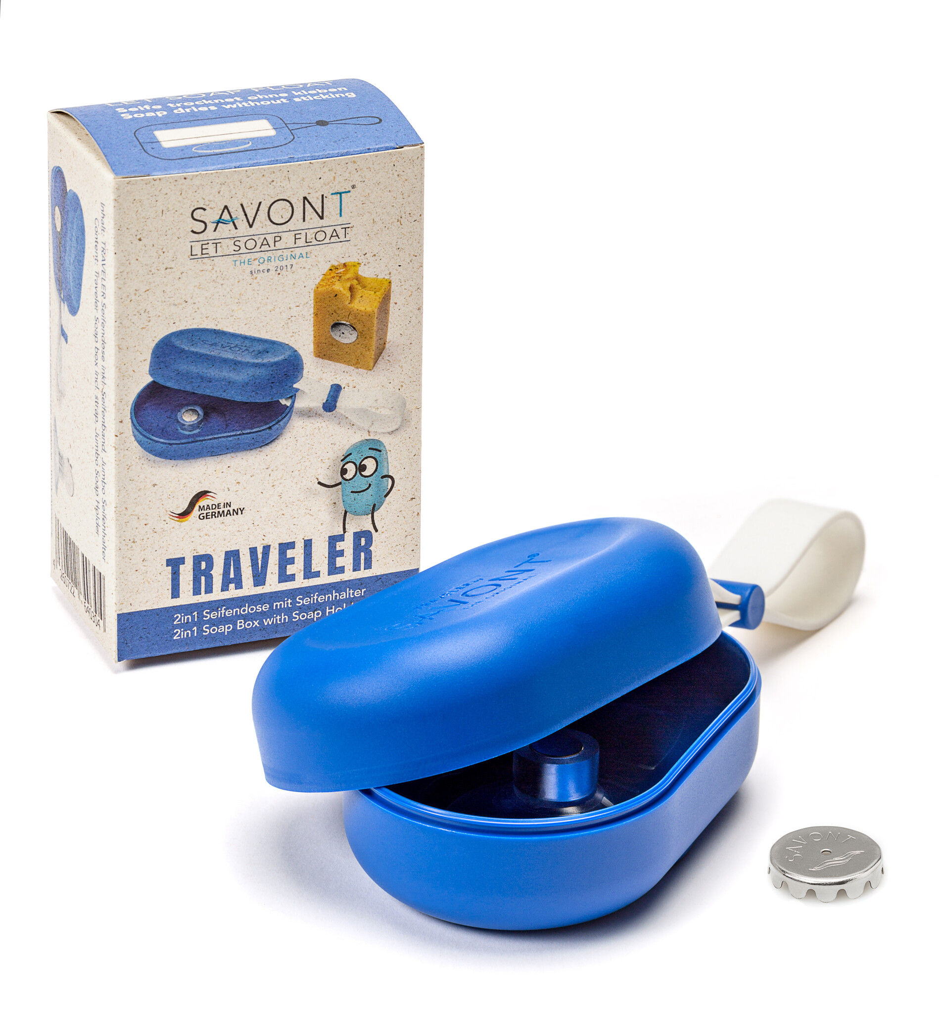 De Traveler zeepdoos is ontworpen om een magnetische zeephouder van SAVONT op de bodem van de zeepdoos te plaatsen. Hierop bevestigt u uw zeep. Door de magnetische aantrekkingskracht is het niet meer in contact met een wand van het bakje en kan het drogen. Als u op reis bent, kunt u de magnetische zeephouder uit het zeepdoosje halen, deze zoals gewoonlijk in de douche of wastafel bevestigen, bijvoorbeeld in het hotel, en uw zeep laten zweven.