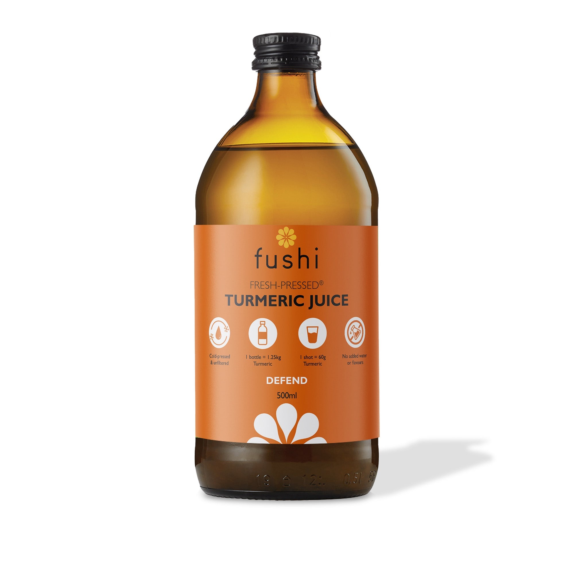 Fushi Organic Fresh Pressed Turmeric Juice is een vers, ongefilterd en koudgeperst, 100% puur kurkuma sap uit de hele kurkumawortel voor supervitaliteit. Kurkuma is een krachtige en antioxidantrijke specerij die volgens onderzoek kan helpen bij ontstekingen, gewrichts- en spierpijn kan verlichten en kan helpen om de immuniteit te ondersteunen. Dit krachtige supersap, gemaakt met natuurlijke conserveermiddelen, zonder toegevoegd water of smaakstoffen, is een krachtig supplement om de dagelijkse vitaliteit te beschermen en te bevorderen. Je kunt het puur nemen of toevoegen aan water, sap of melk. Het is ideaal voor het maken van Golden (Turmeric) Milk. De superfoodsappen van Fushi zijn biologisch-dynamisch geteeld, koud verwerkt en 100% rauw en puur om hun optimale voedingswaarde te behouden. Fushi-kurkuma sap is volledig gemaakt van 100% rauwe, in het seizoen aanwezige kurkumawortel, afkomstig uit Gujarat, India.